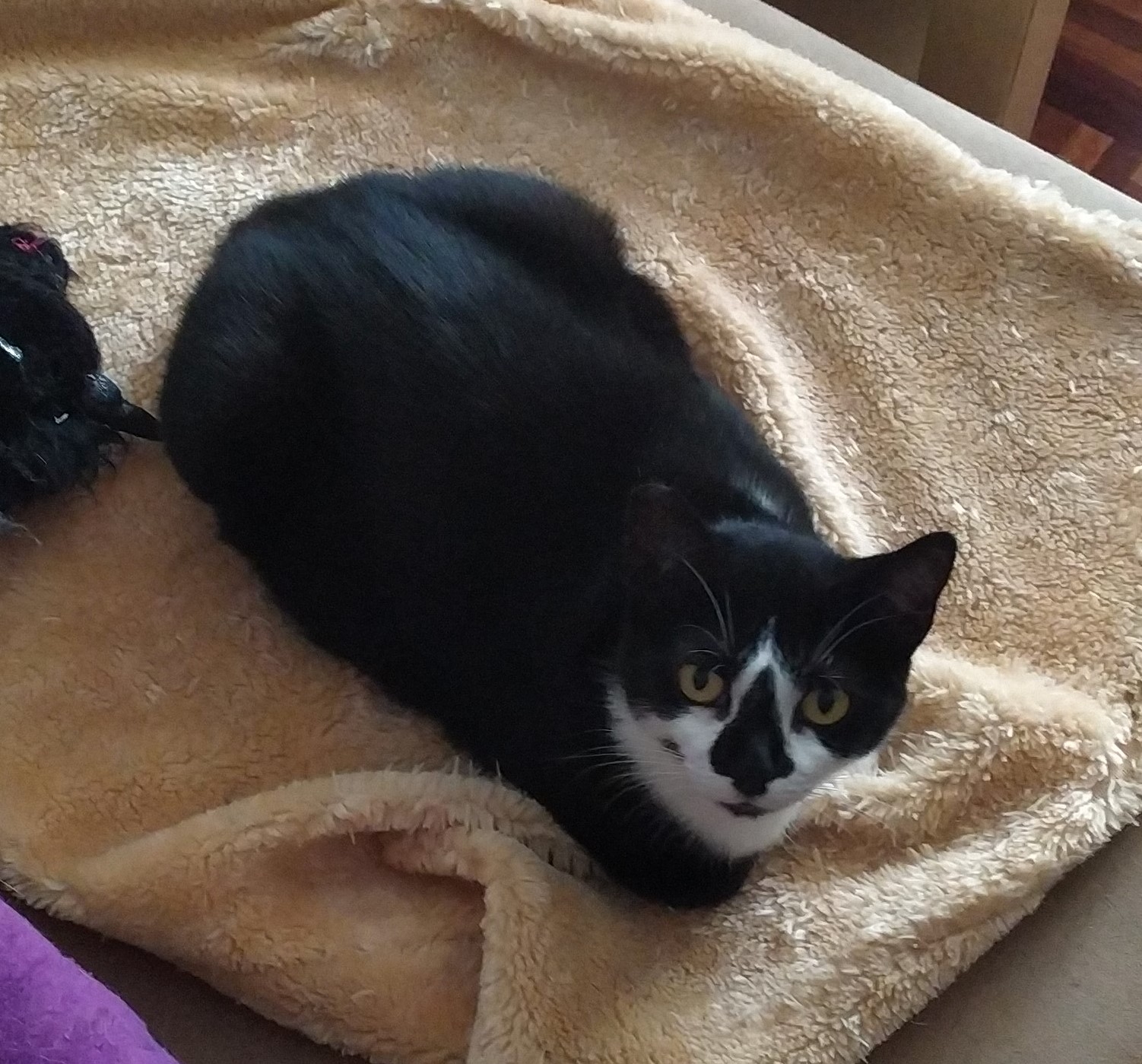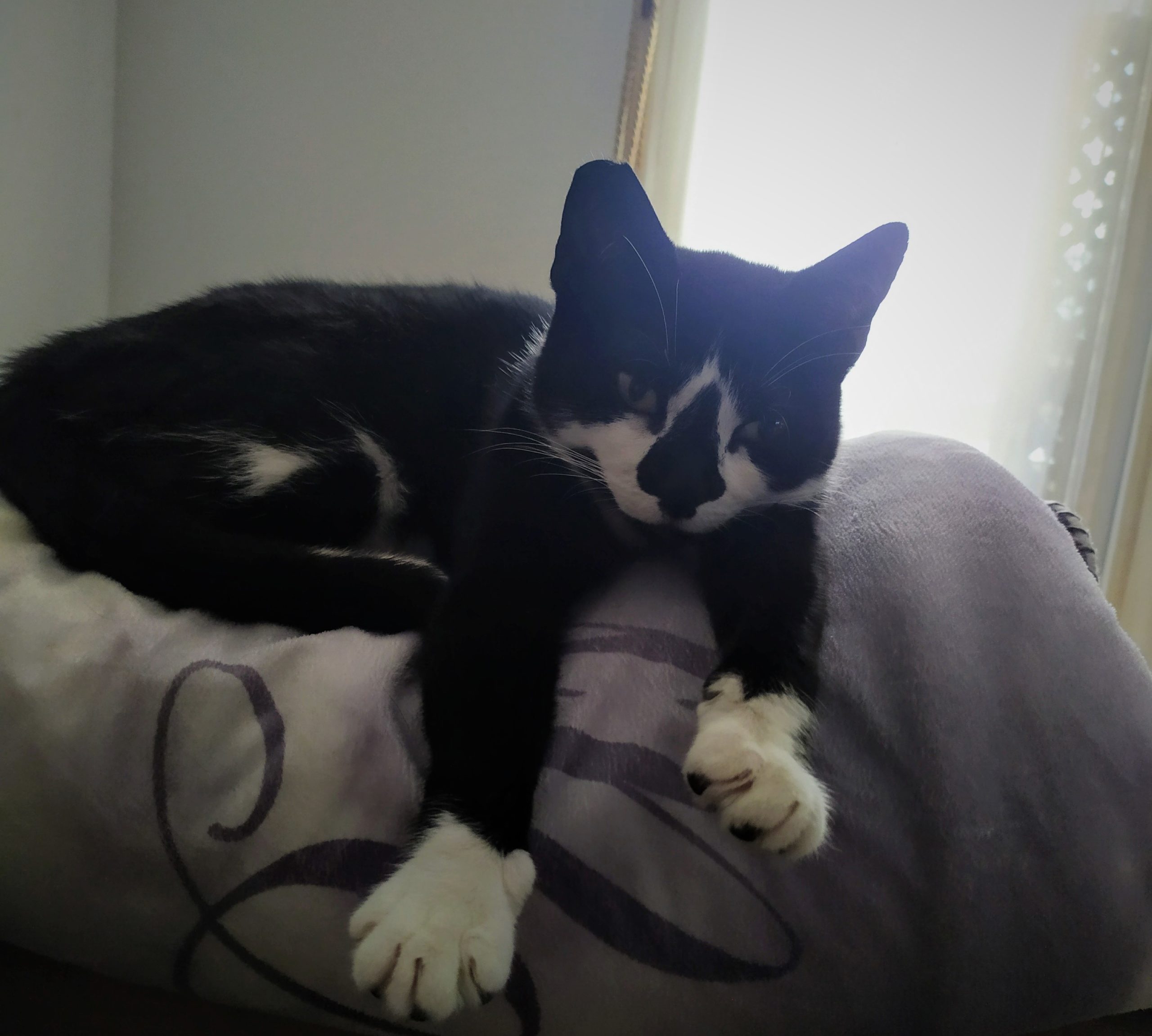 Su familia de acogida nos cuenta que Carolain es muy mimosa y le encanta dormir hecha una rosquita en la cama.