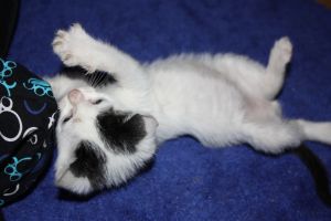 «como se afila las uñas en mi mecedora de mimbre…. esta hecho un bandido… hace sus cositas muy bien, y juega un montón…..esta muy guapo.. haber si tiene suerte pronto..».