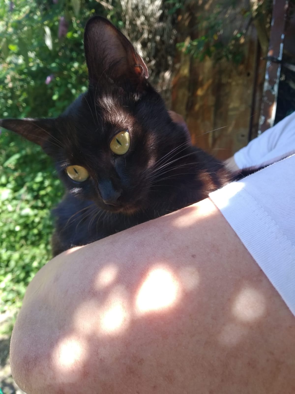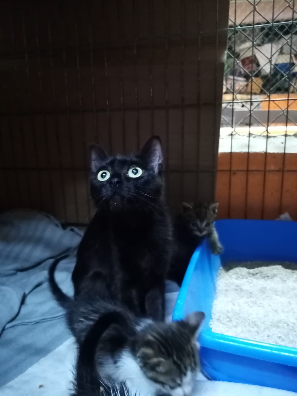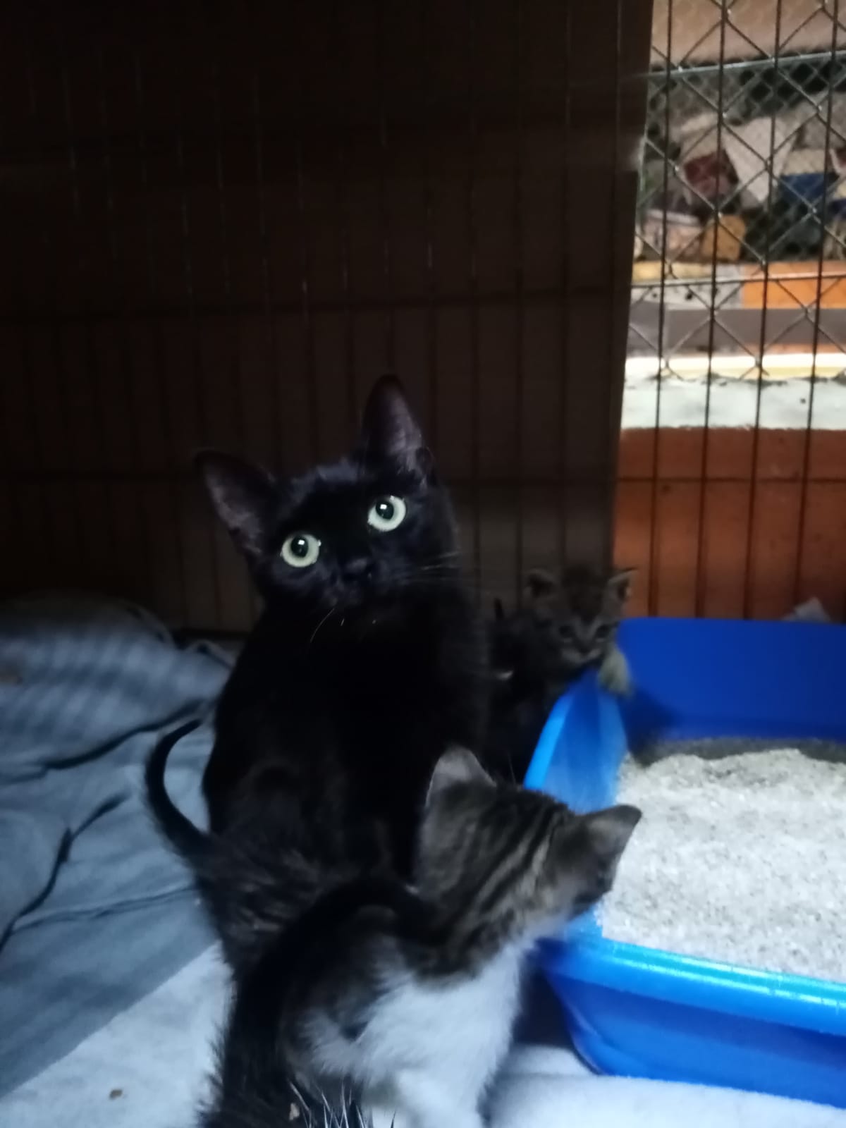 Cayena es esta preciosa gata que suponemos muy joven (Creemos que esta puede ser su primera camada) . Vivía con todos sus cachorros en la super colonia. Nos ha costado pero hemos podido sacarla de la calle y hacerla un hueco en el refugio y menos mal , la pobre esta famélica con tanto pequeño así que varias veces al dia la ponemos de comer a ella sola extra para que pueda ir cogiendo peso mientras amamanta a los pequeños. Tiene un carácter de 10, es de esas gatas que hasta te siguen por el refugio para pedirte mimos y atenciones y a la que puedes coger en brazos sin problema. Ademas, con sus bebes nos esta poniendo las cosas muy muy fáciles.