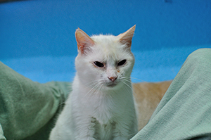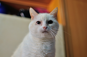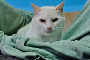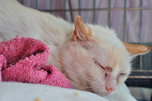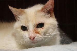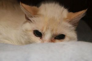 Los ojillos en principio le podría quedar crónico, le lagrimean y los tiene algo rojos. Su casa de acogida le va a dar lisina para ayudarla.