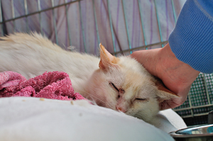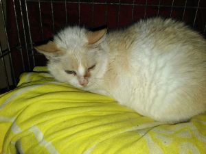 Estuvo con mantita eléctrica, dandole de comer y poco a poco parece que va mejorando. Aun así, todavía está fastidiada y es una raspita, sigue con analíticas y controles y con el cariño y atenciones de su acogida esperamos que termine de recuperarse y sobretodo de perder el miedo que todavía tiene a la gente.