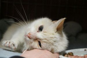 Hemos conseguido que coma limpiandola, haciendola sentir a gustito, con cariño…y ella se preocupa más de recibir esos mimos que de otra cosa