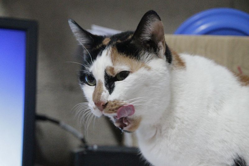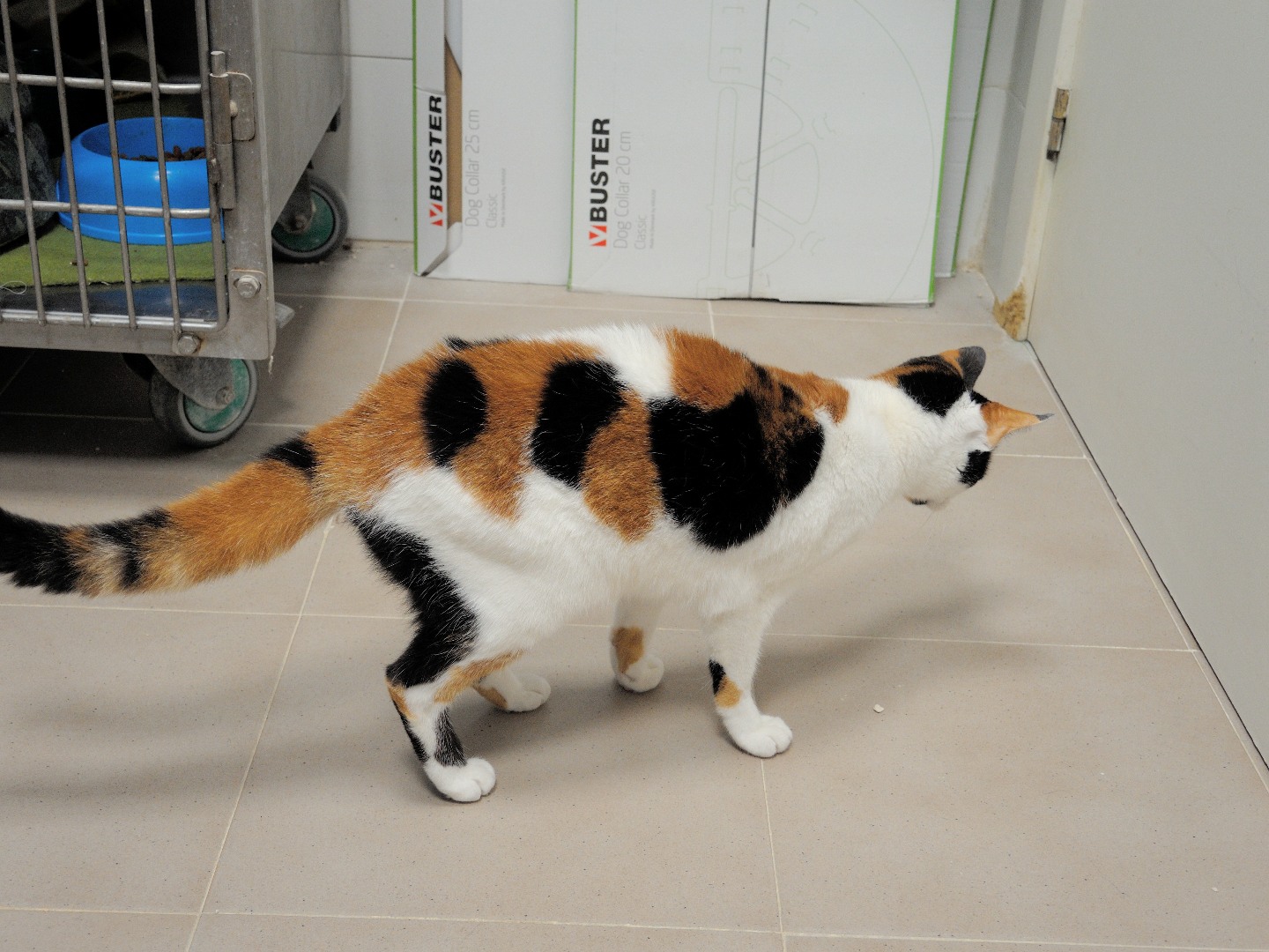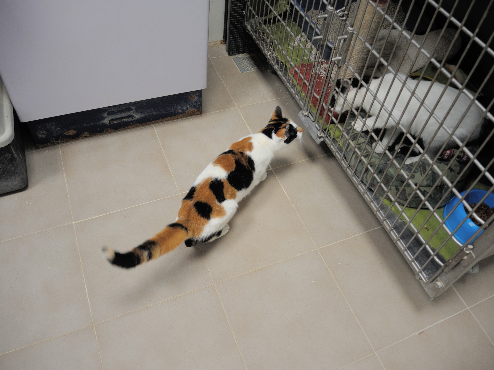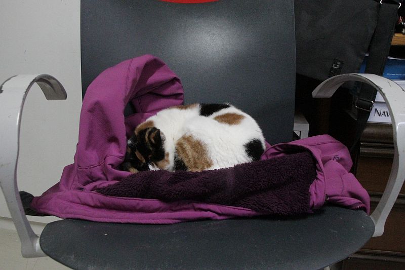 Que Chantelle hace lo que quiere con nosotras ¡está claro! Es la reina del refugio ahora mismo; entra y sale a su antojo del pasillo a la zona de trabajo y se sirve lata sin pedir permiso .También le encanta robarnos la sillla de la zona de trabajo y dormir sobre nuestros abrigos.