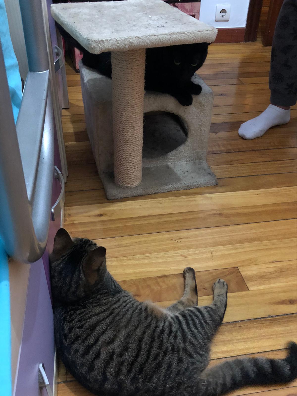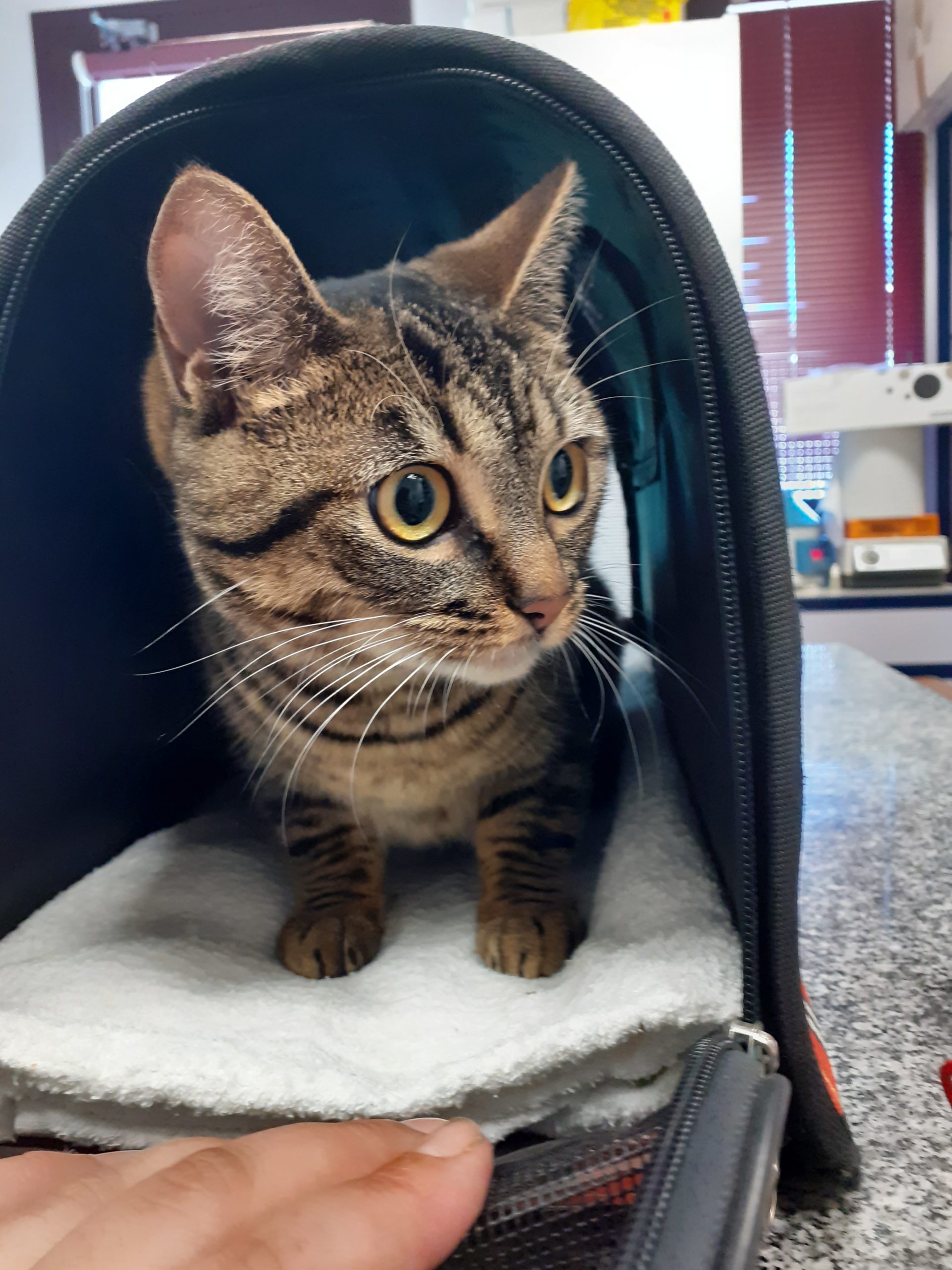 La compañera nos pidio ayuda y tras dos dias en perrera sin entender absolutamente nada y en estado de panico esta en una casa donde ¡¡Ha vuelto a comer!! a ronronear…a curiosear. Etzi, antes Kerman se ha colado en la habitacion y aunque ha habido algun bufido (algo logico y normal) parece ir todo viento en popa.