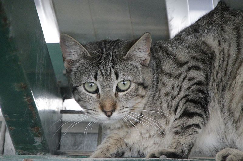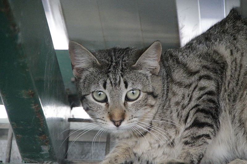 Chicca llegaba a la perrera el pasado año junto a Zeppo y otros de sus hermanos. Tendrá aproximadamente un año de edad y ya ha sufrido su primer invierno en la perrera y ¡esperamos que el último! Siempre está subida a las alturas, pero en alguna ocasión, suavemente, hemos podido tocarla.