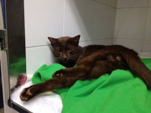 Este gato tan original de pelaje color chocolate ha estado viviendo en la calle.