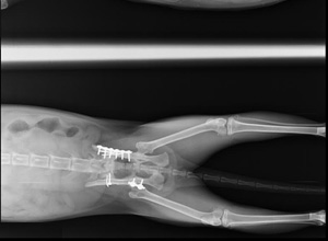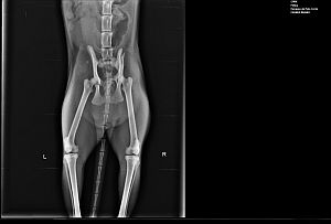 Hay una imagen de la cadera que no está muy clara pero hoy por hoy no pueden hacer una mejor valoración porque es imanejable. Lo ideal sería verla caminar y poder hacer esa Rx sin sedación, pero por el momento no ha podido ser. Dentro de 10-15 días repetirán la Rx y entonces esperamos saber algo mas.