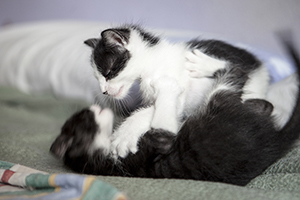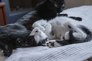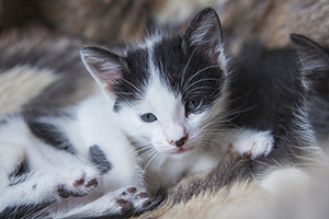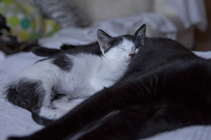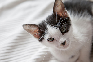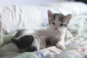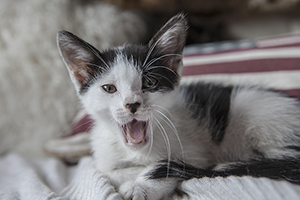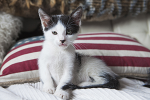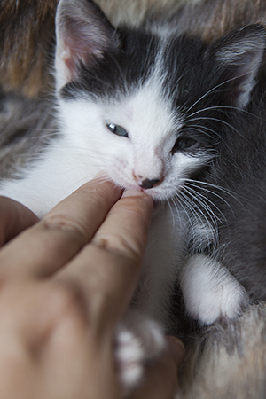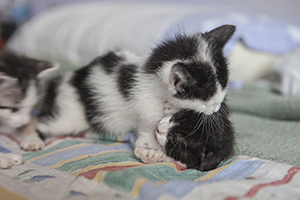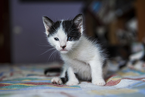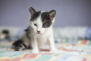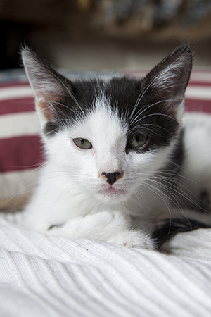 Colin es un gatito que aún no ha cumplido 2 meses, en las fotos parece más grande pero tiene un tamaño normal para su edad.