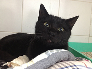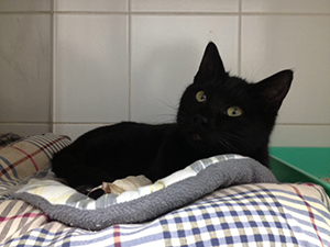 Congo es un cachorrote de unos 6 meses, precioso, negro con pelazo brillante… llegó a nosotros como un atropello con fractura de pelvis y posible neumotórax. Estuvo ingresado varios días y ahora ya le han dado el alta y hay que controlarle las cacas.