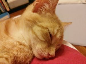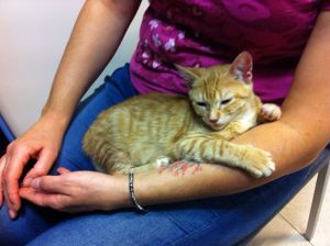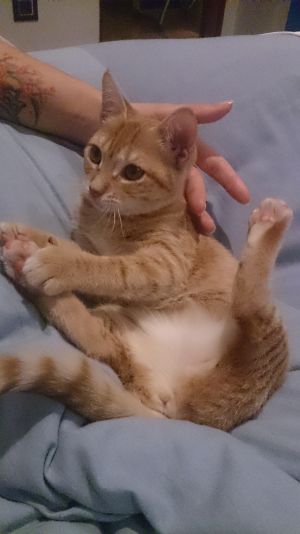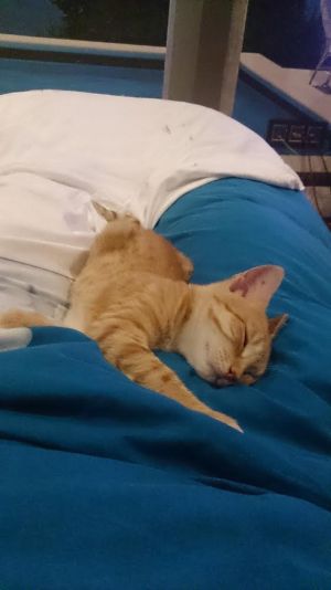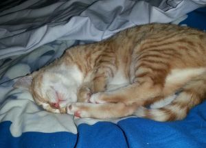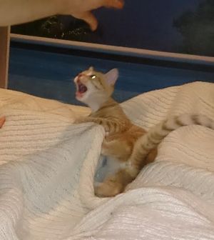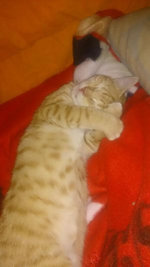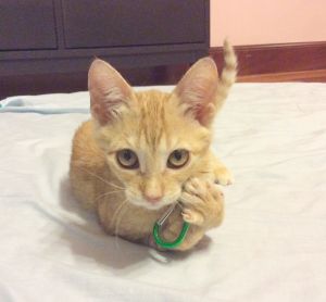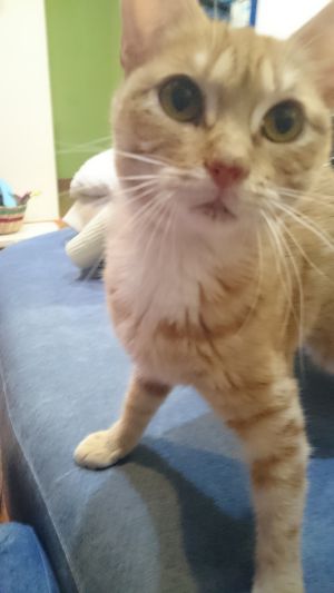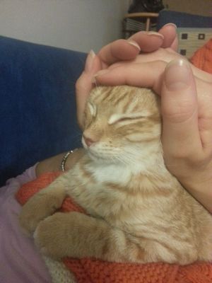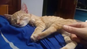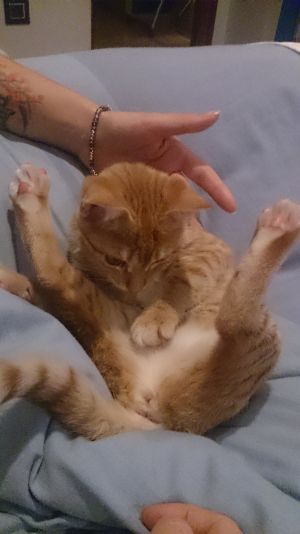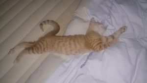 Es un encanto de gatita; cariñosa, juguetona, mimosa vale que sigue con la ataxia muy pronunciada…pero seamos pacientes que seguro que mejora.