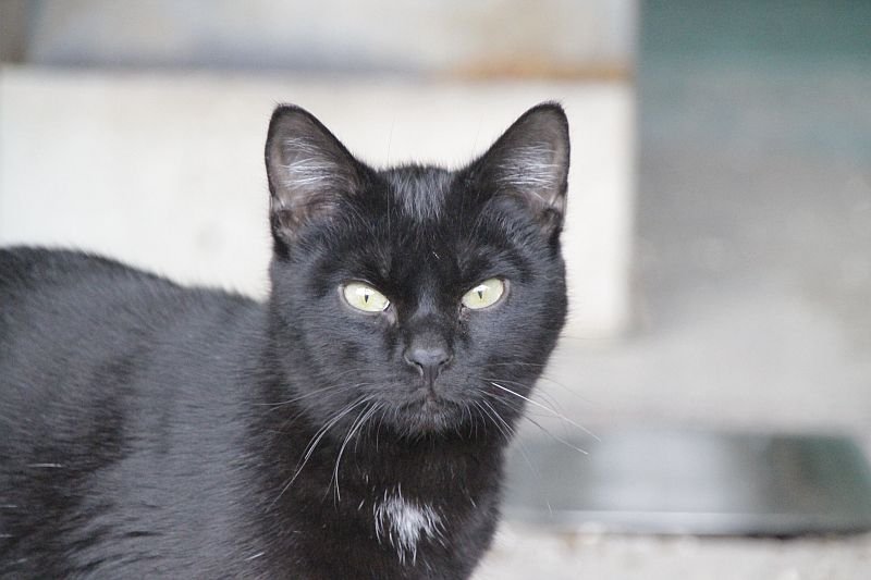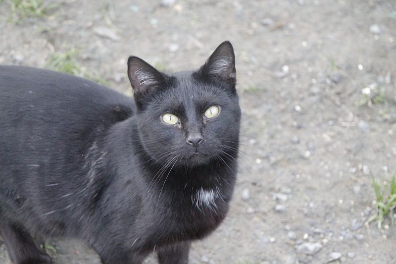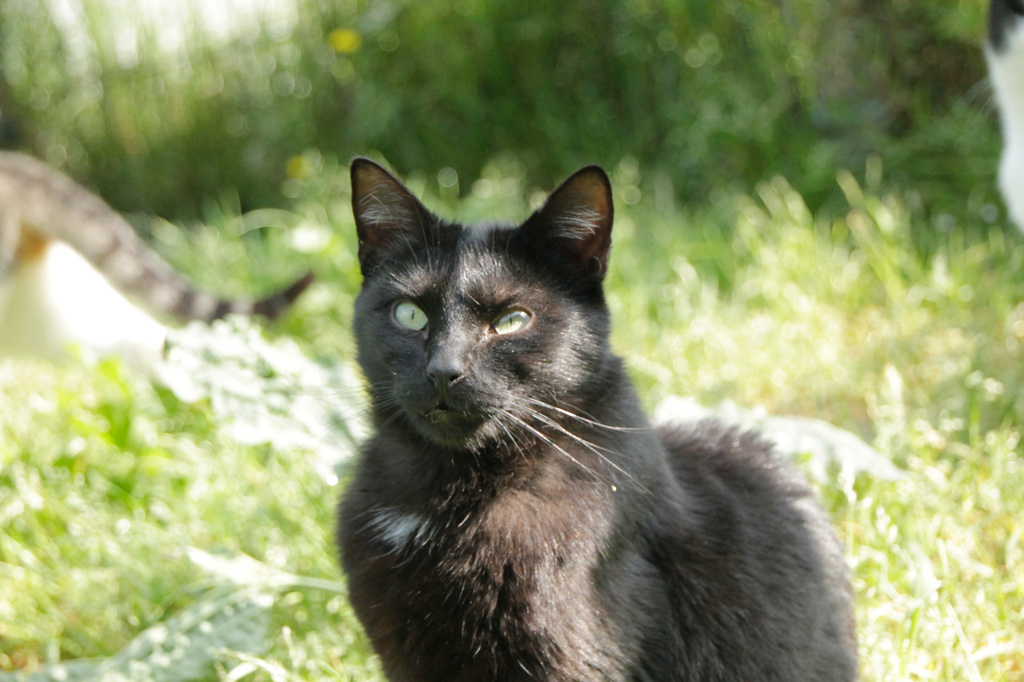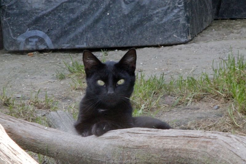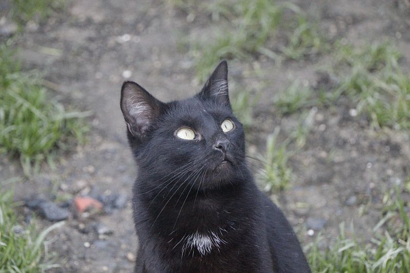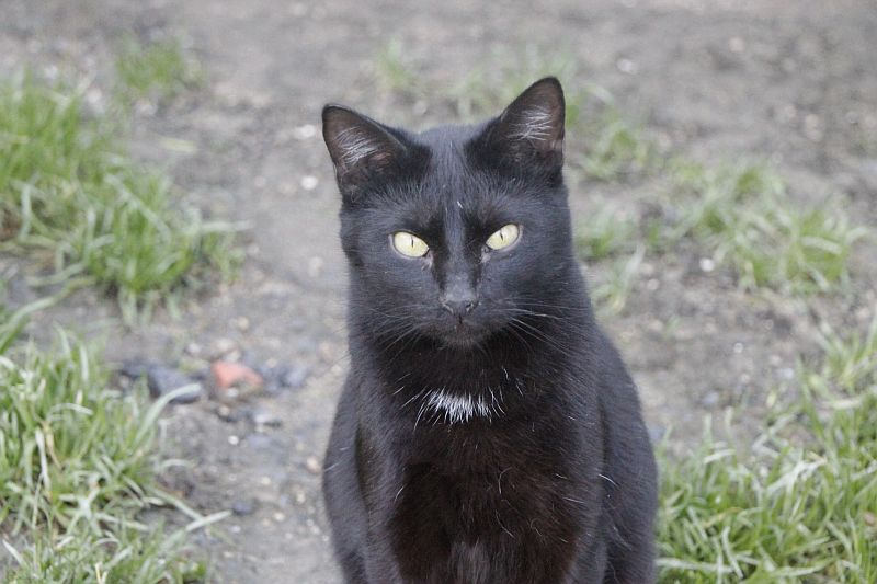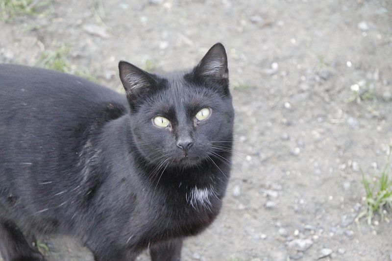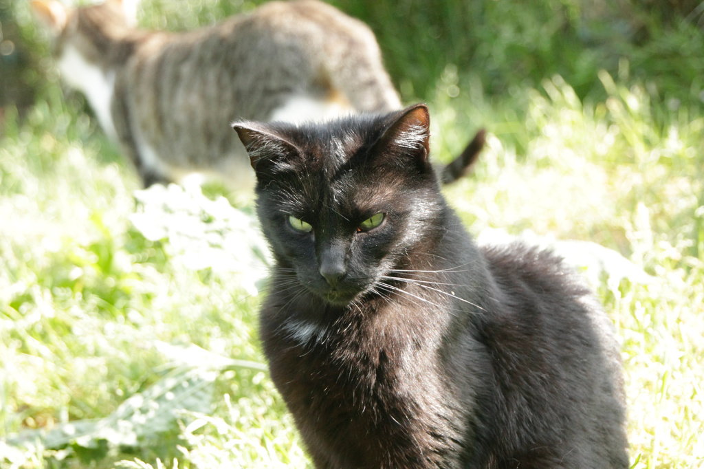 Cuando llegó a finales de 2017 era un cachorro. Cuando entramos al recinto nos recibe porque sabe que vamos con comida de lata. Si bien es confiado tiene ciertas malas maneras, como que puede pegarte si le llevas acariciando un rato; en realidad no son malas maneras exageradas. Ha mejorado mucho porque al principio rehuía las caricias y ahora no, pero mantiene ese punto de independencia típico de los gatos no demasiado apegados.