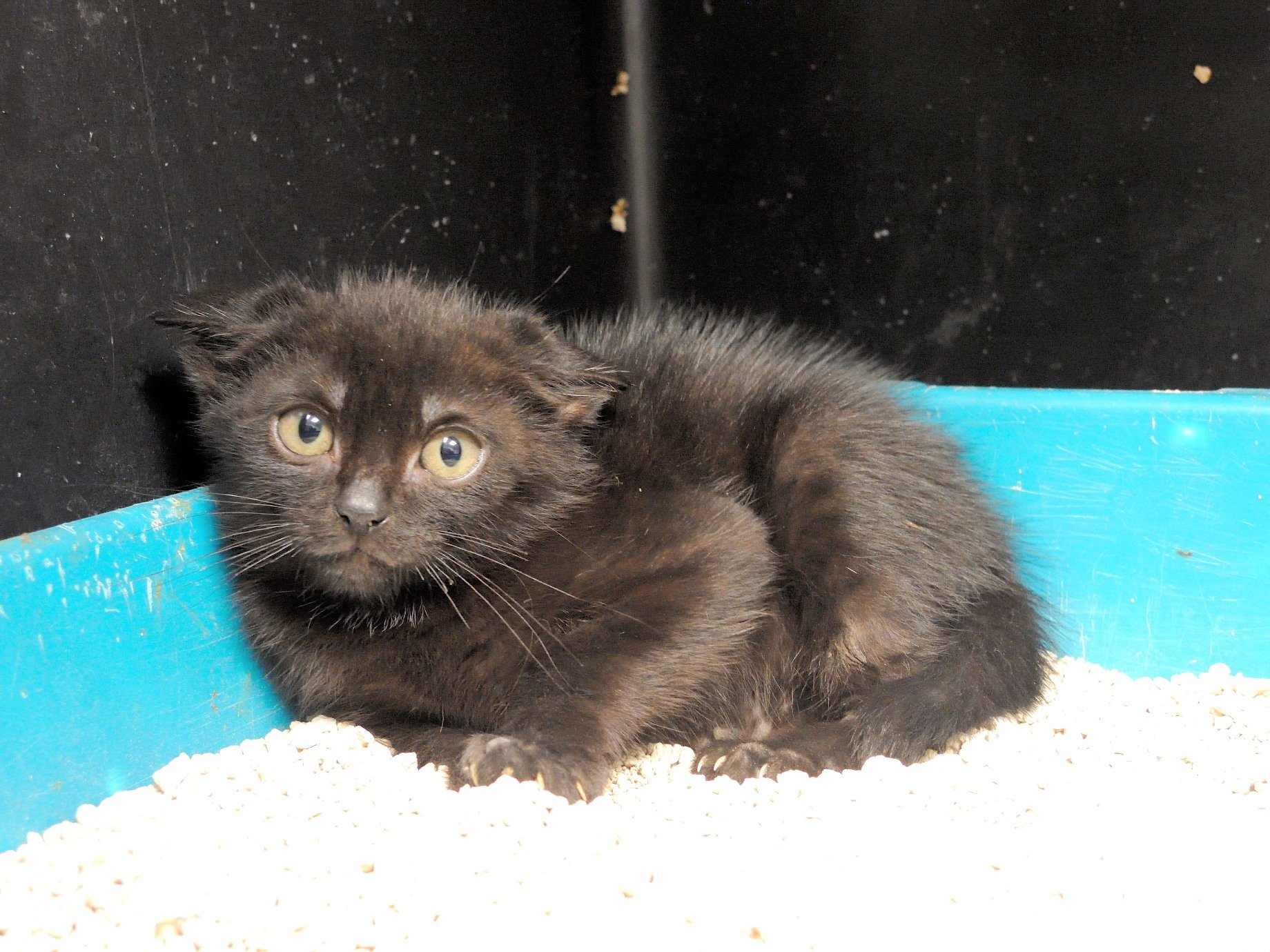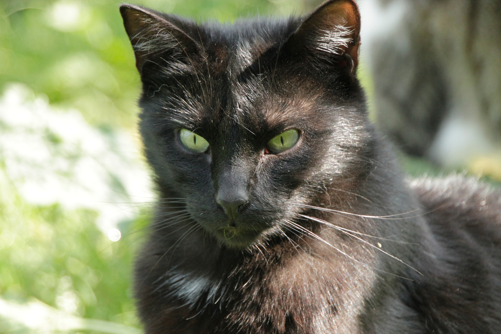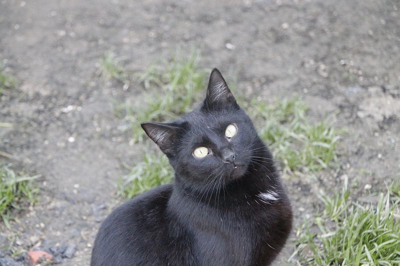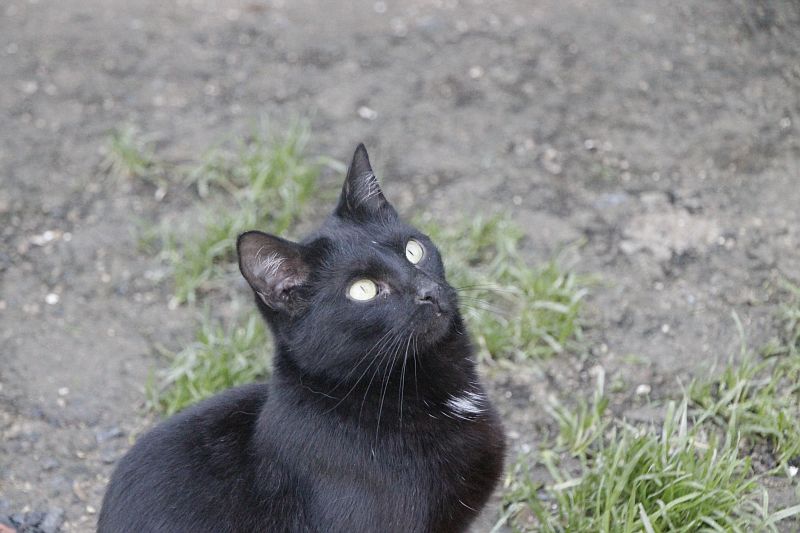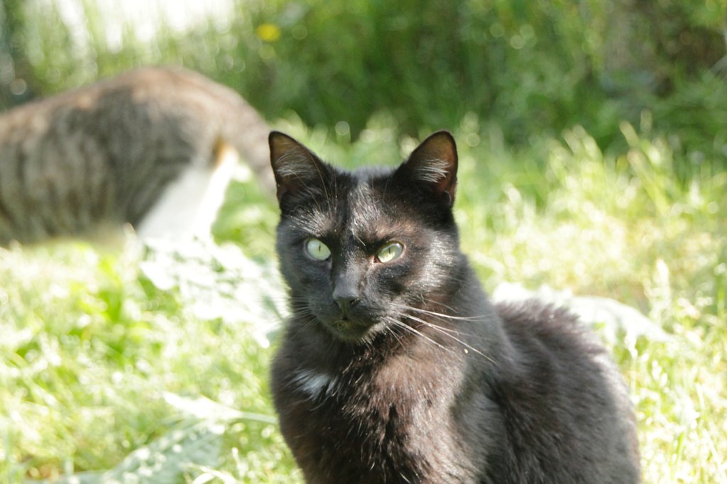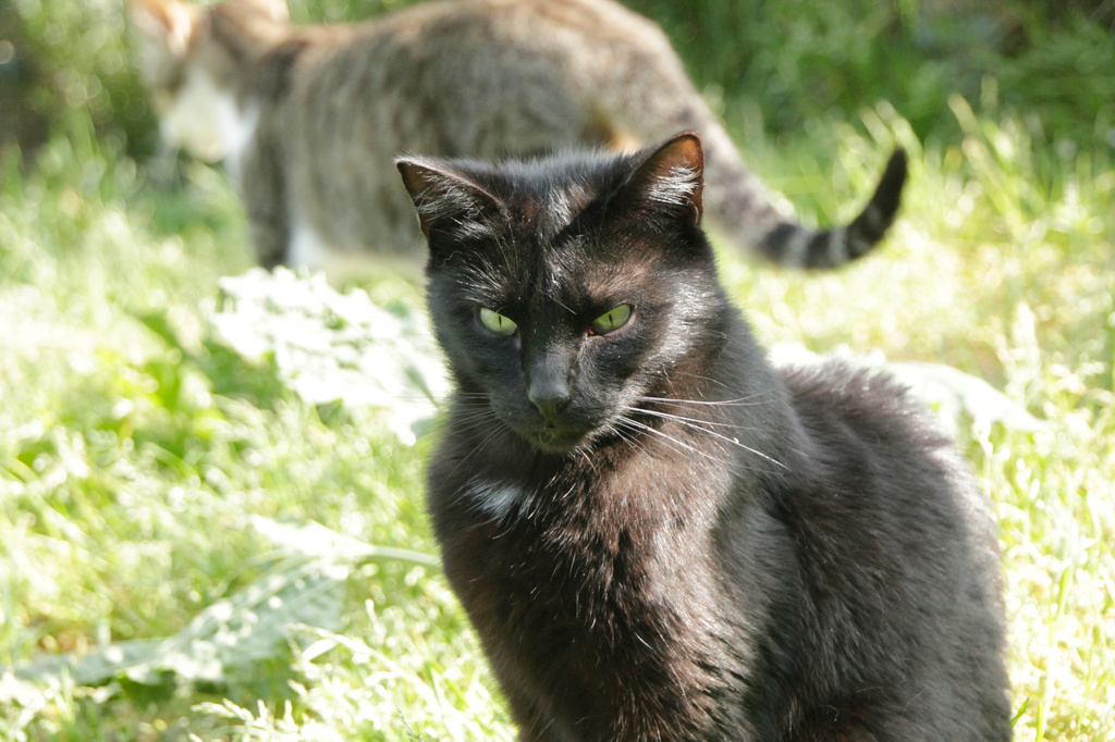 Cuando llegó a finales de 2017 era un cachorro. Cuando entramos al recinto nos recibe porque sabe que vamos con comida de lata. Si bien es confiado tiene ciertas malas maneras, como que puede pegarte si le llevas acariciando un rato; en realidad no son malas maneras exageradas. Ha mejorado mucho porque al principio rehuía las caricias y ahora no, pero mantiene ese punto de independencia típico de los gatos no demasiado apegados.
