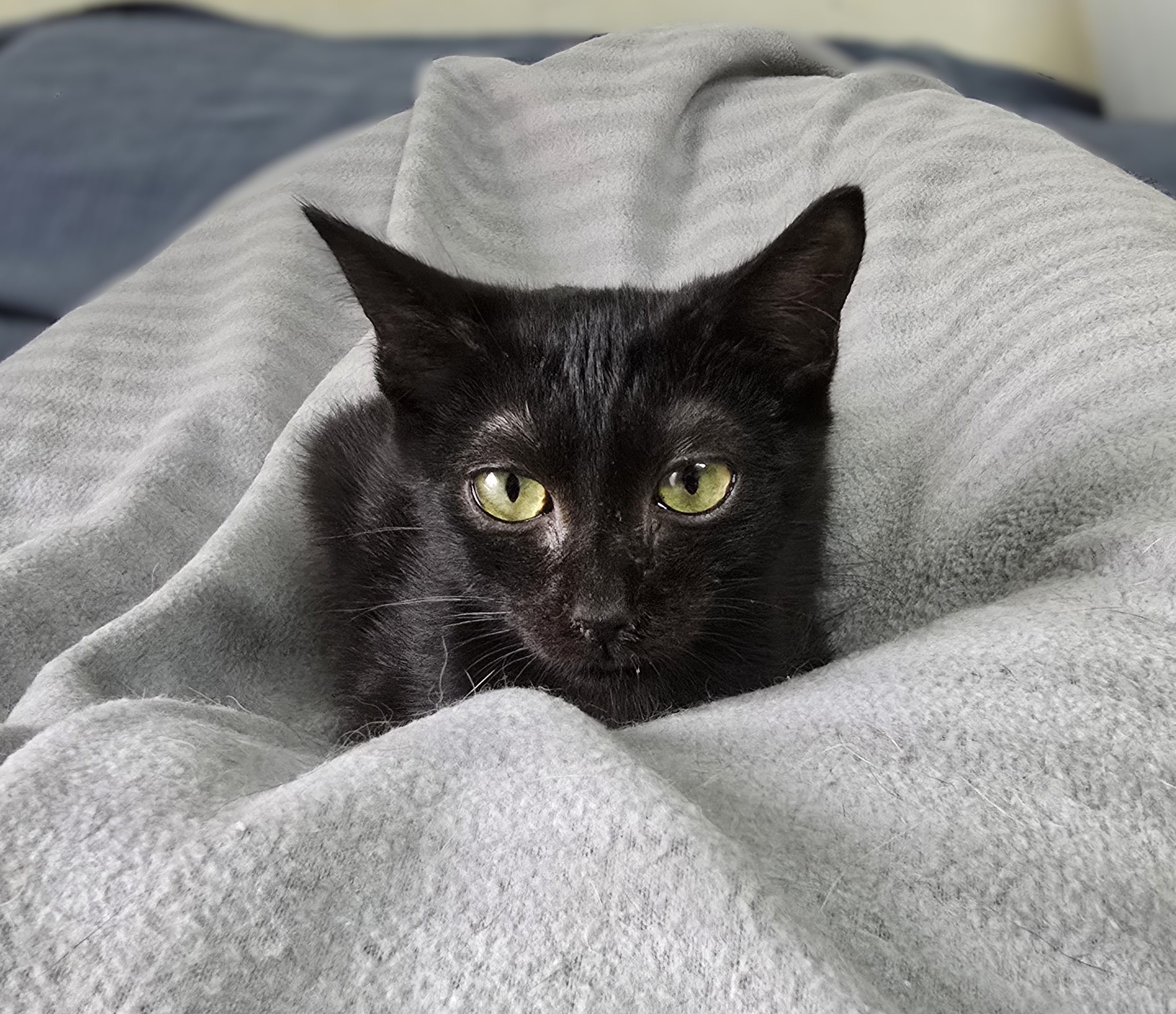 Su casa de acogida nos cuenta: «DEYANERA es una gatita bastante tranquila, aunque cuando llega el momento juegos juega como todos. Le encanta comer lata y cuando llamo a todos siseando viene con todos corriendo porque sabe que siempre hay algo especial de comer, sea lata o txutxes.»