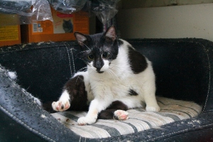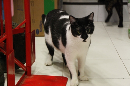 Cuando no conoce es miedoso y huidizo, cuando tiene confianza ronronea, juega y le gustan los mimos.