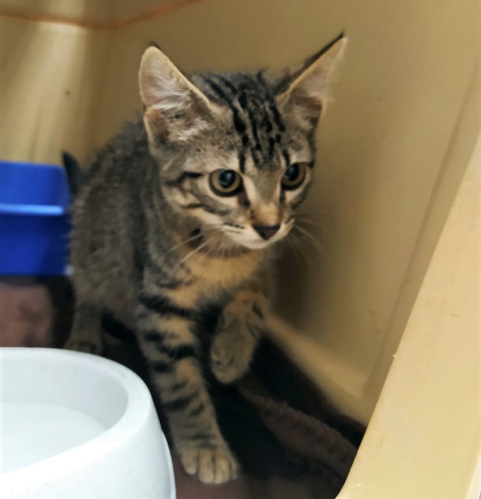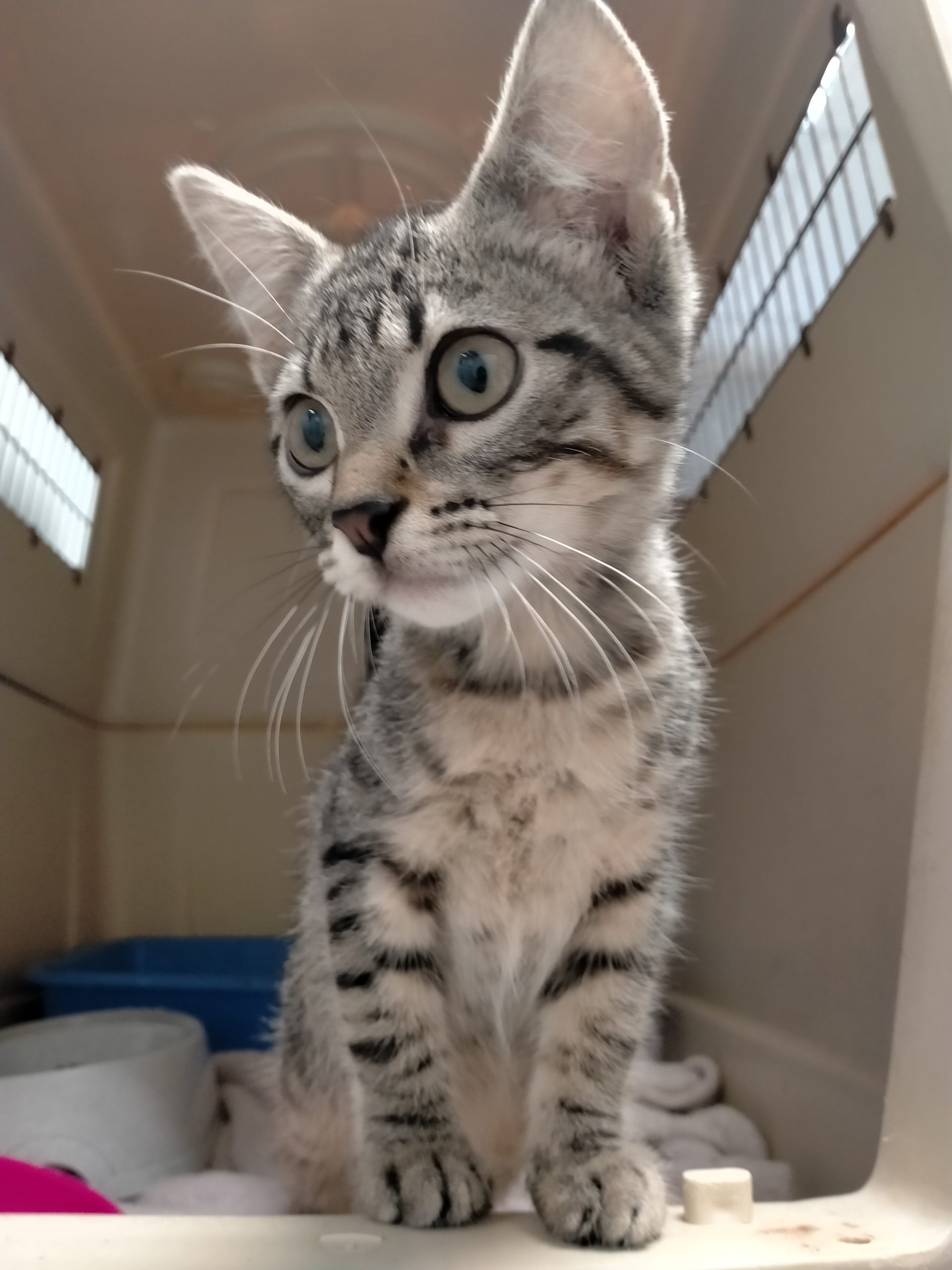 Disha es una preciosa cachorrita de unos 3 meses. Acaba de llegar plagadilla de pulga y con varias heridas que ya estamos curando. Es una gatica adorable.