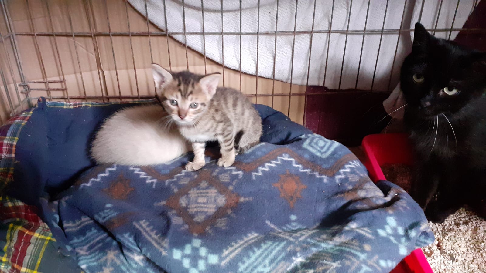 El atigrado es un macho al que hemos bautizado como Donald, y la mix de siamés Daysi. Ya han recibido su primera desparasitación interna, la segunda les toca a partir del 10 de Marzo . Cuando la terminen podrán ser vacunados y estarán listos para encontrar un buen hogar. Eso si, sera requisito indispensable la adopcion de ambos hermanos juntos.