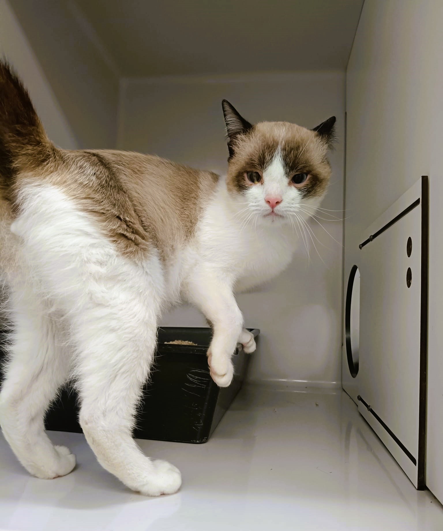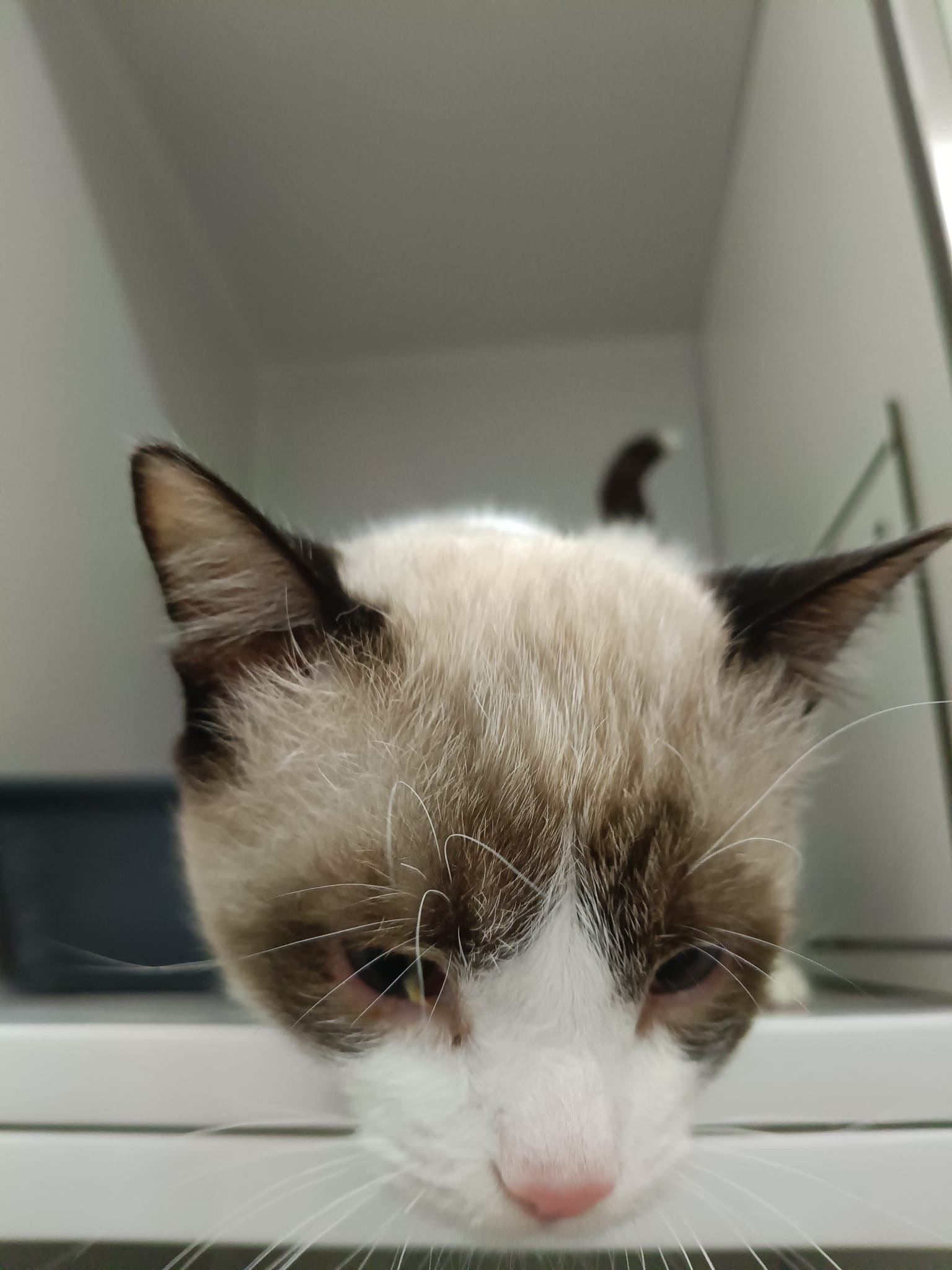 DORAEMON fue recogido por una persona sin hogar que no disponía de medios para cuidarlo. Tuvo que trasladarse al hospital veterinario en muy mal estado, presentaba hernia inguinal, ojo seco y otitis bilateral además de una infestación de pulgas y una malformación craneal. Es positivo a Inmunodeficiencia felina.