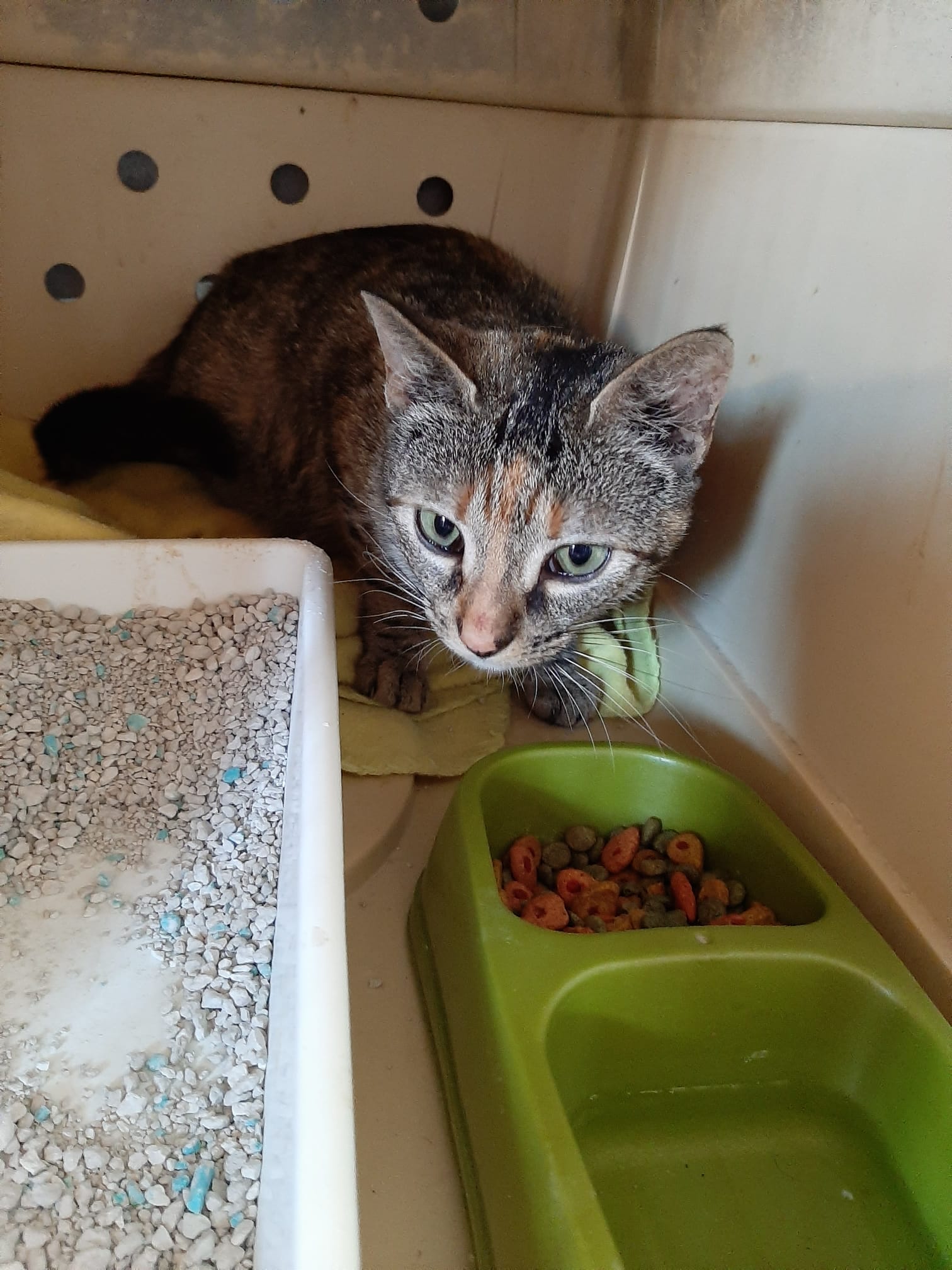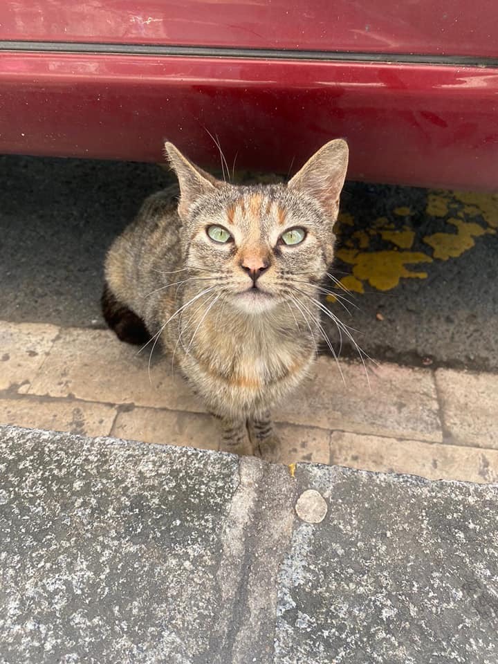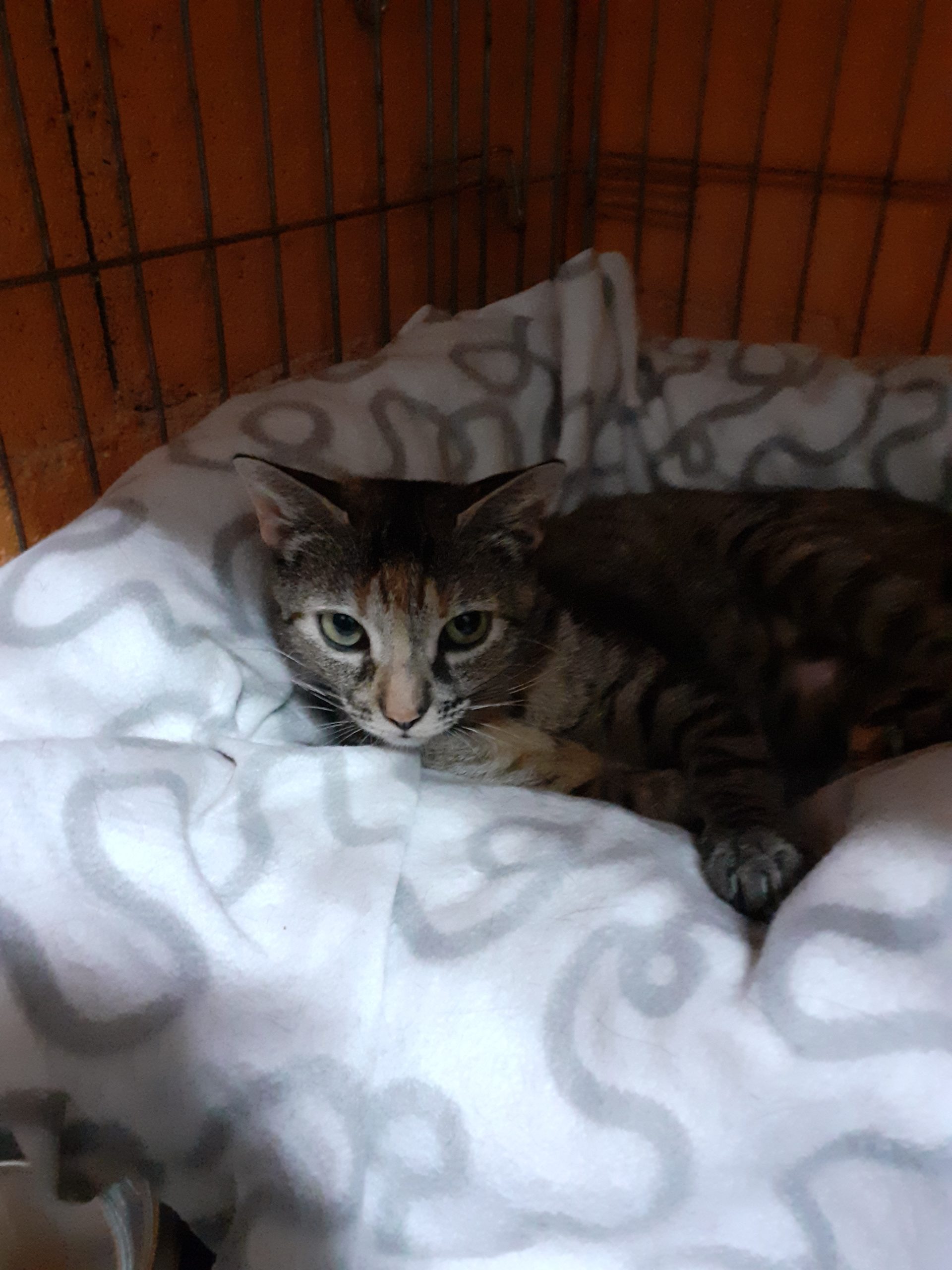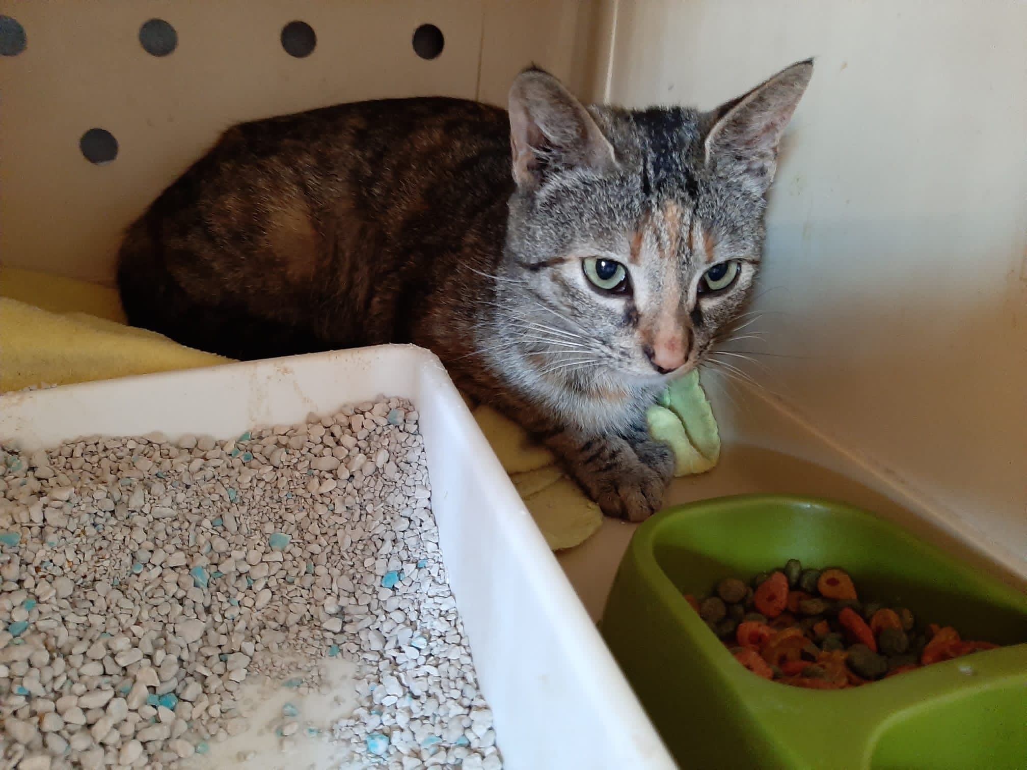 El viernes nos dieron aviso de esta gata, preñada en la calle, sola Y pidiendo comida. A pesar de los problemas debidos al estado de alarma, pudimos rescatarla.