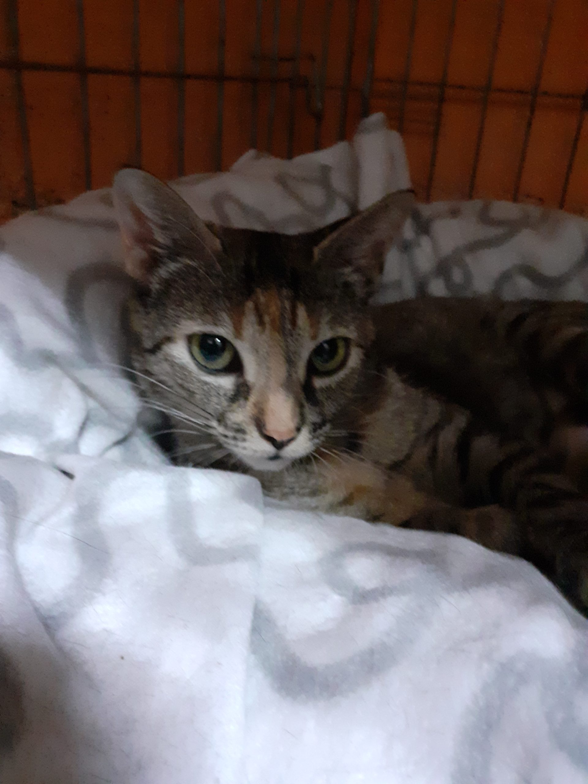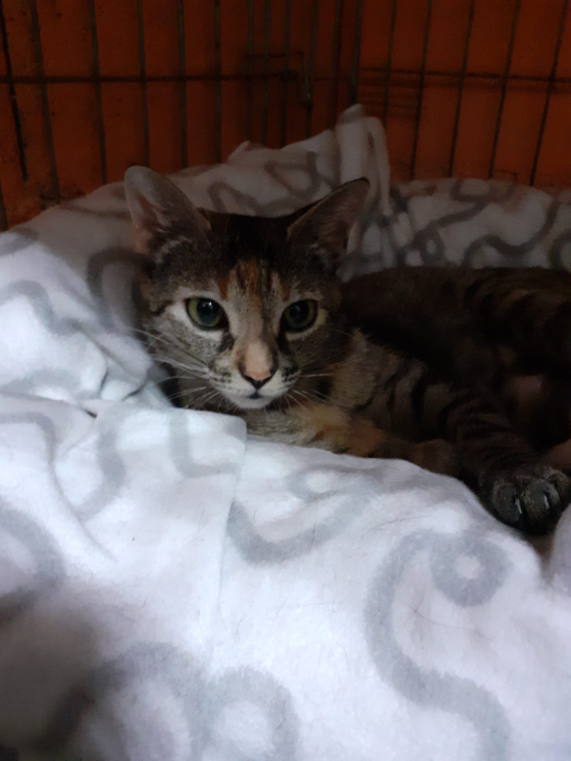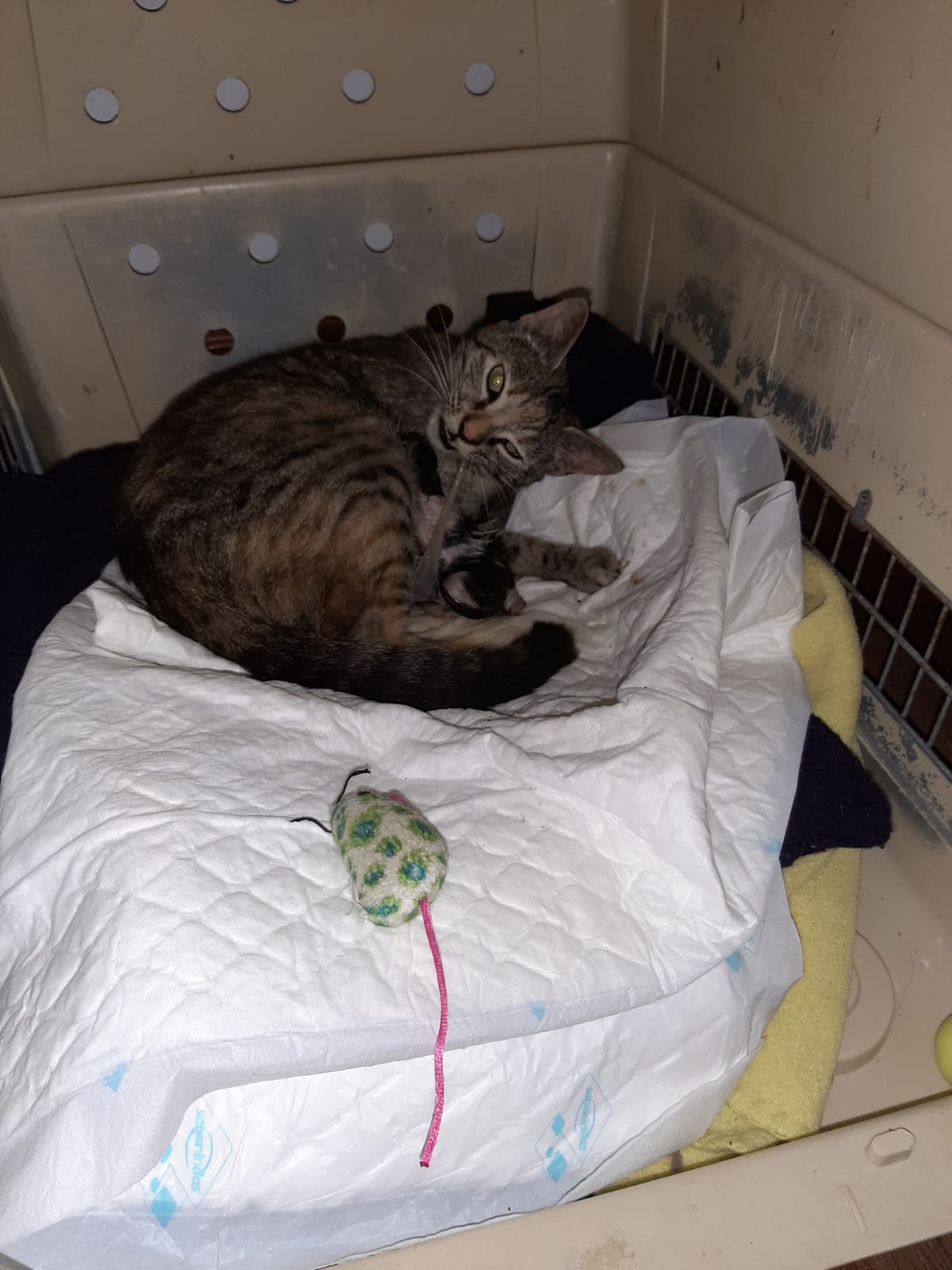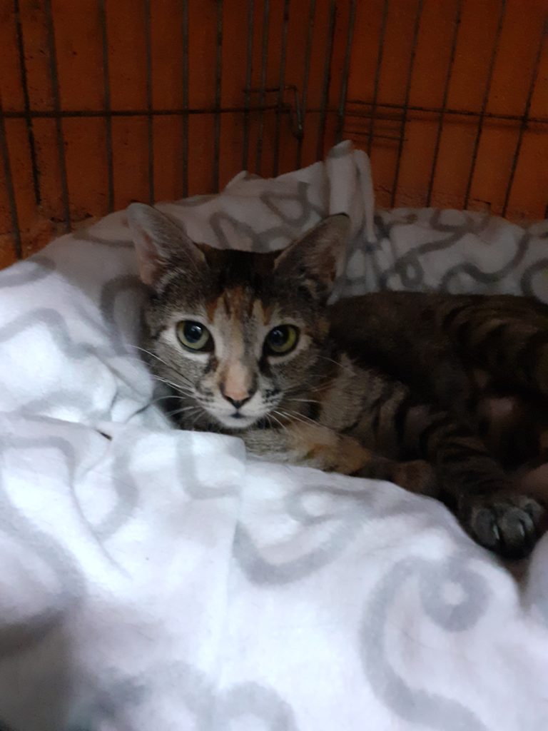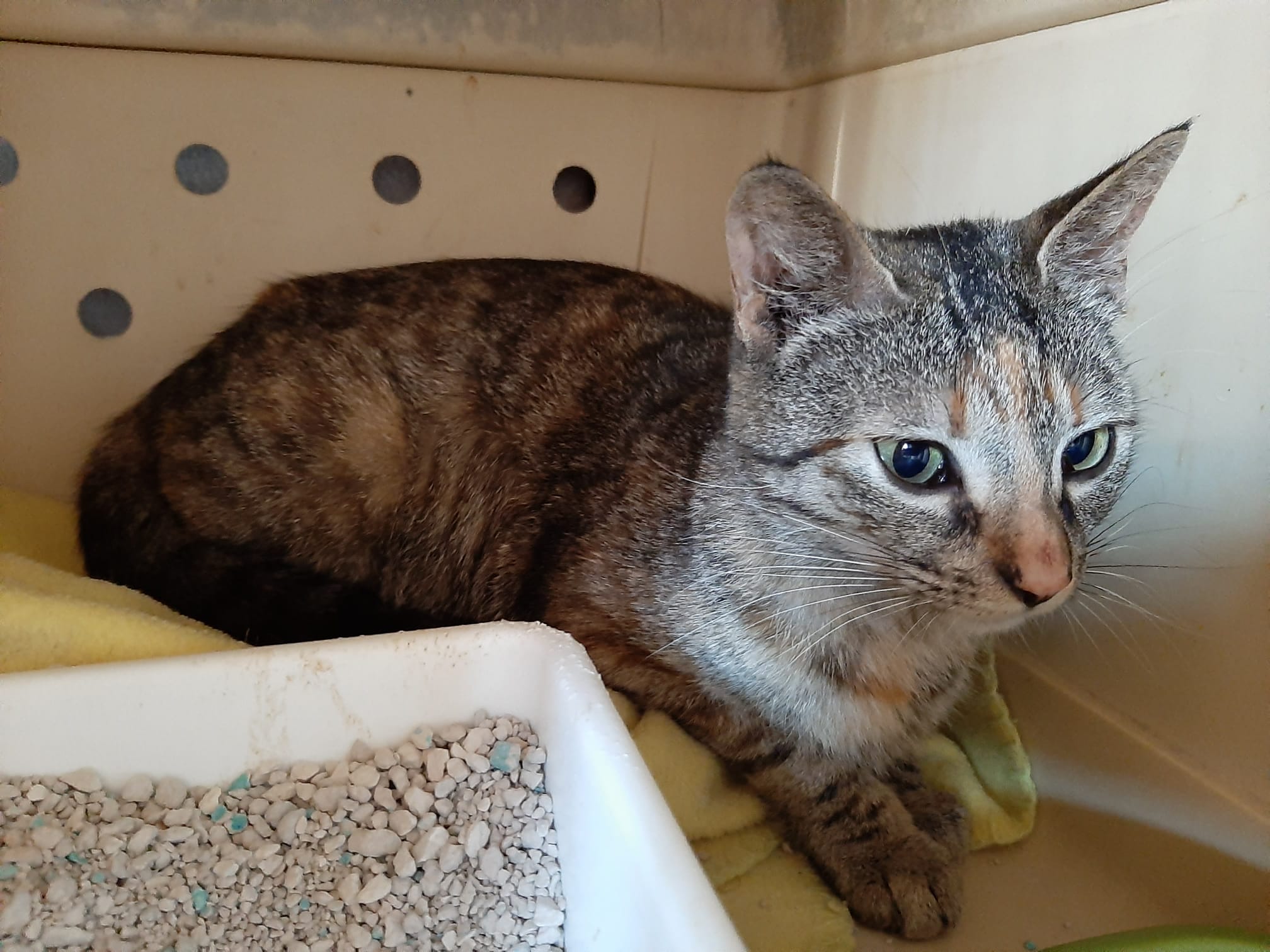 El viernes nos dieron aviso de esta gata, preñada en la calle, sola Y pidiendo comida. A pesar de los problemas debidos al estado de alarma, pudimos rescatarla.