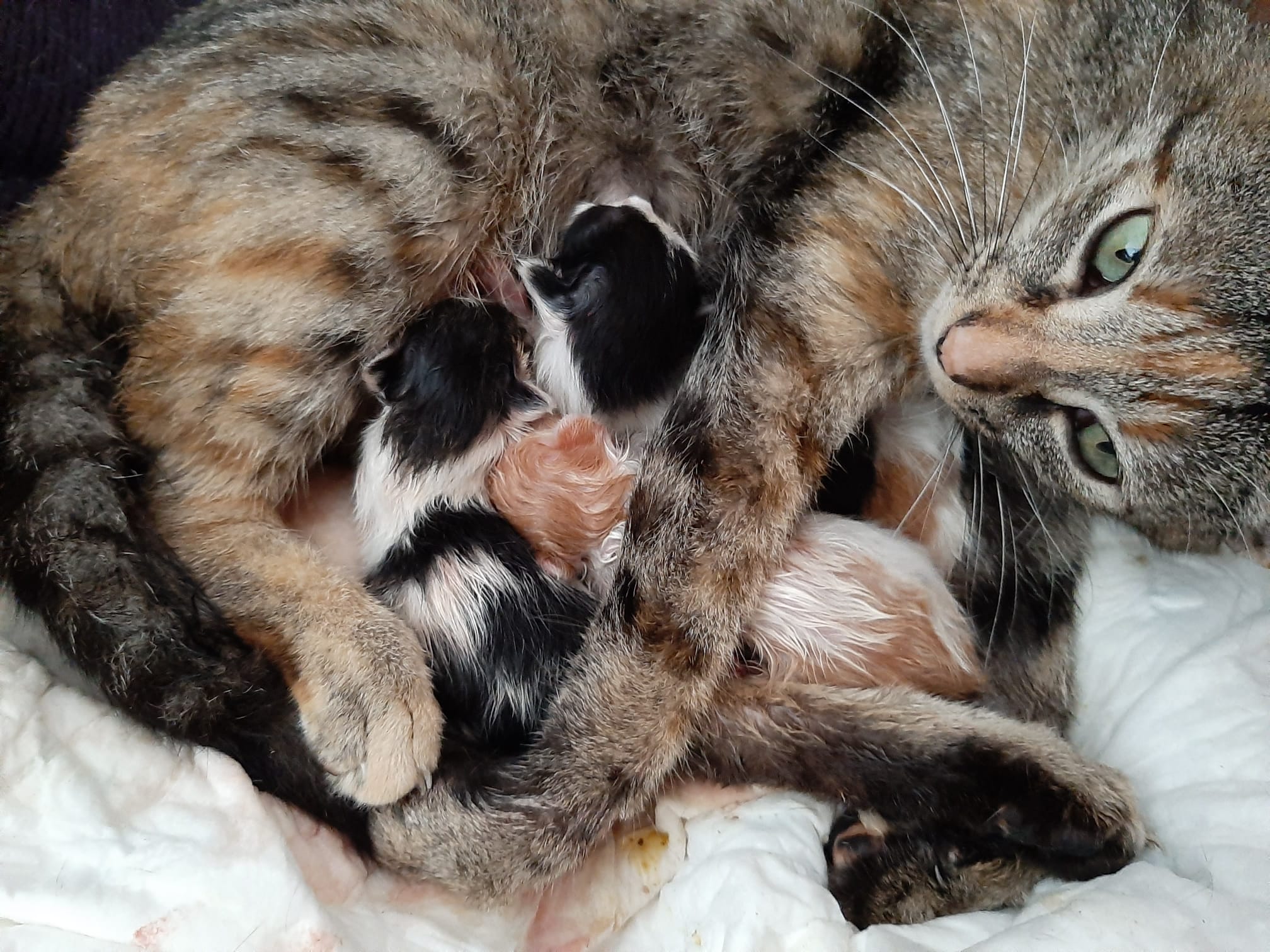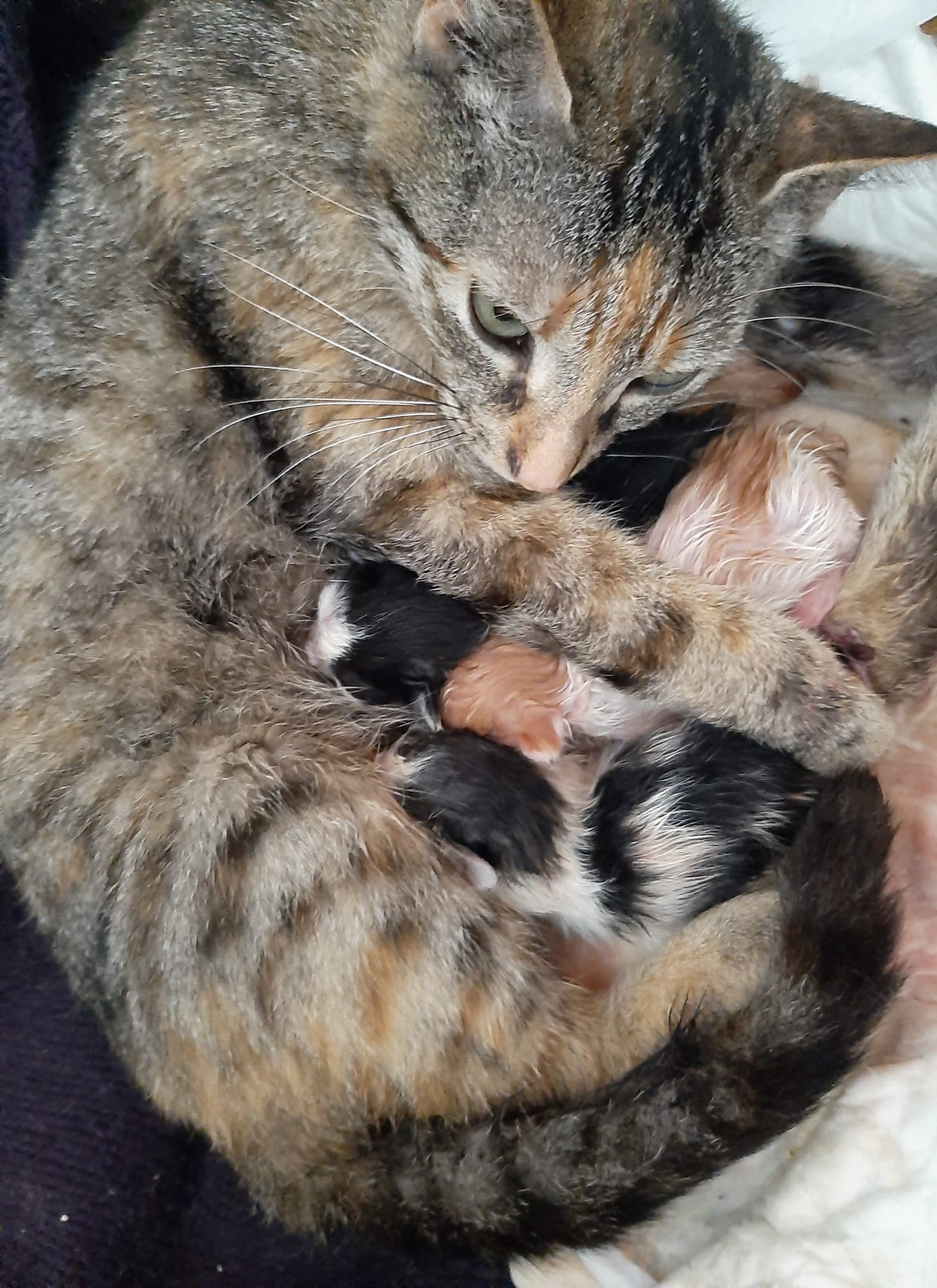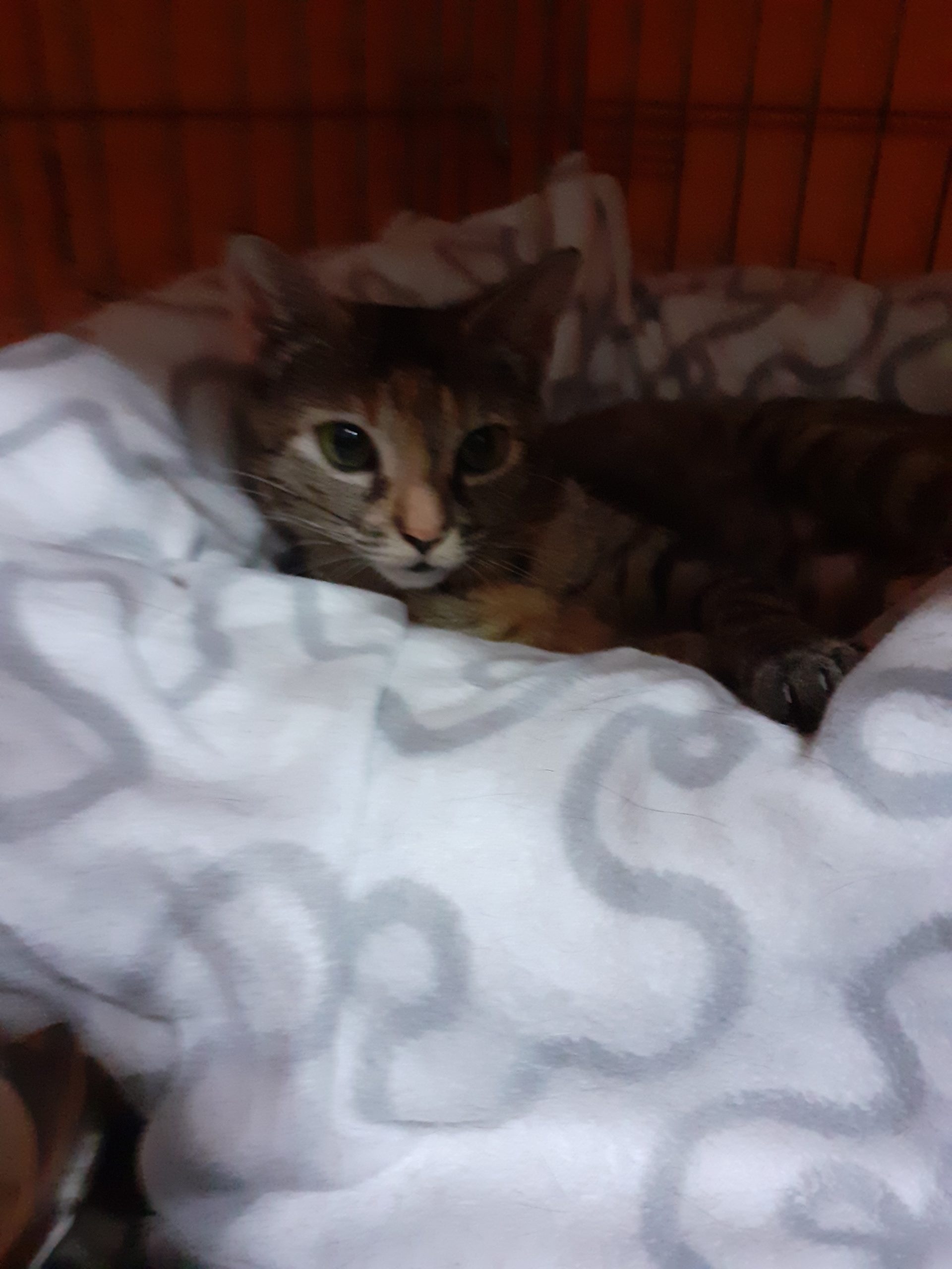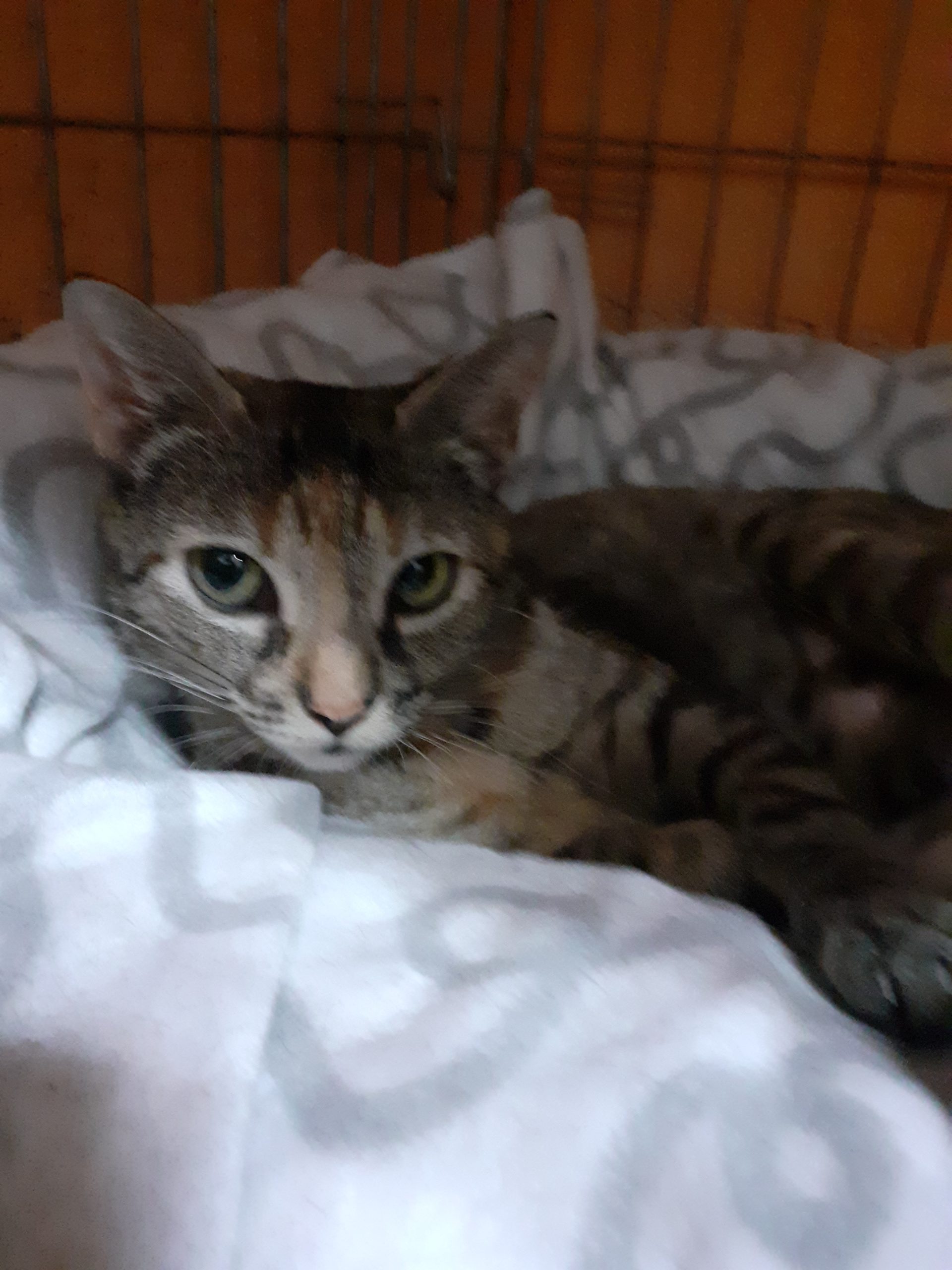 El viernes nos dieron aviso de esta gata, preñada en la calle, sola Y pidiendo comida. A pesar de los problemas debidos al estado de alarma, pudimos rescatarla.