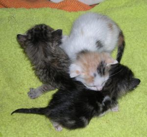 Eimi consiguió sobrevivir… pero degraciadamente sus dos hermanitos murieron a las dos semanas, no pudieron remontar por mucho esfuerzo que pusimos.
