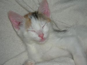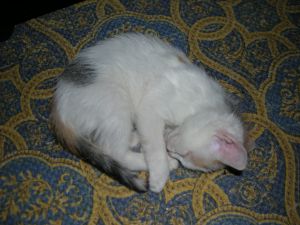 Nuestra pequeña Eimi nos llegó con apenas diez días de vida, la encontraron en la calle metida en una caja con sus dos hermanitos ateridos de frío y en muy malas condiciones.