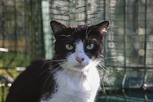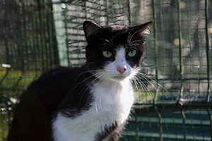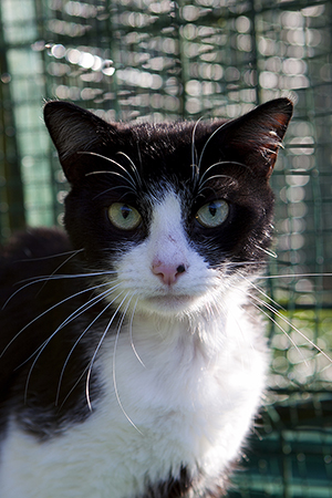 El chaval de la peca, curioso nombre, para este gatete. Tiene mucho miedo y eso es lo que le hace ser tímido aunque con cierta dosis de confianza… estamos seguros que fuera de la perrera seria un gato que se haría enseguida y acabaría siendo cariñoso.