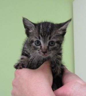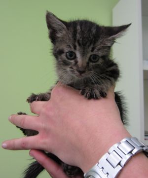 Ela es una gatita de unas 5 semanas, nos ha llegado empapada y muertita de hambre, es un peluchín.