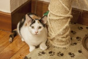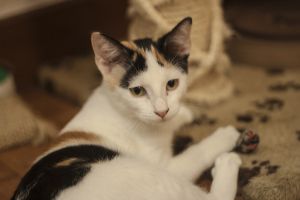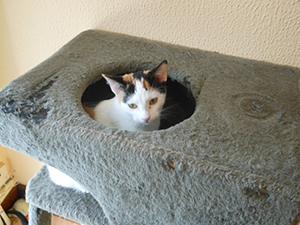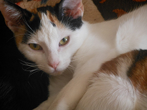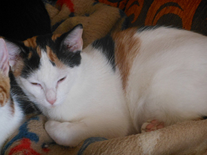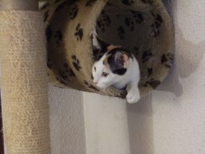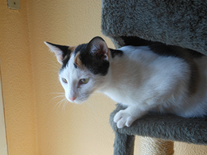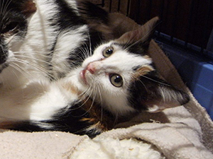 Elisabetta es tricolor de unos dos meses y medio tiene infección respiratoria y además diarrea, pero confiamos en que vaya cediendo.