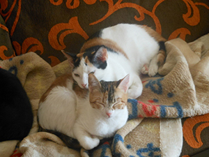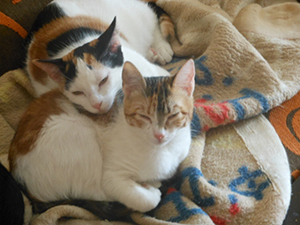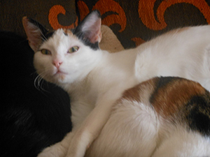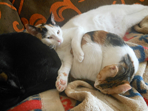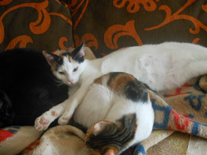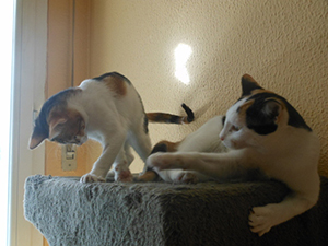 «Elisabetta ya esta totalmente recuperada. Tanto es así que incluso las kakas las hace mucho mejor, blandas pero ya no es esa diarrea horrible que hacia al llegar. Es una gata supercariñosa que se te sube encima, te besa, te ronronea… no ha presentado ningún problema con ningún gato desde el minuto 0 que entro en casa y siempre está pendiente del que está pachucho. No es una gata para estar sin otros gatos ya que en cuanto nota que esta sola lía la de cristo es padre… llora, grita… se enfada… por lo dem´ss es buenisima».