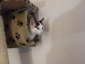 Ha resultado ser un cielete de gatita; cariñosa, mimosa, adorable… y sobretodo juguetona a más no poder. un trastete que aprovecha para jugar todo lo que se encuentra (¡incluidos los ajos!).