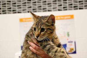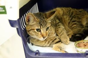 La pobrecita además tiene una herida en el morrete… todo ello nos indica que ha caído de una altura, nos imaginamos además que es una gatita casera por su buen carácter. Con todo el susto y el dolor que tiene, ella solo quiere mimos y caricias.