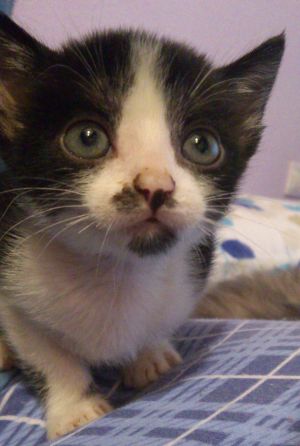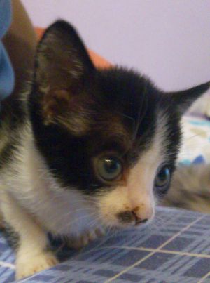 Con el tiempo se está haciendo cada vez más cariñosa y busca más el calor humano. Es muuuy espabilada, la verdad, y como buena hembra es de las más espabiladas de la camada. No hay que olvidar que la pobre al igual que dos de sus hermanos estuvo muy enferma, pero es muy fuerte y ahora es una gatita sana que sabe tanto ser independiente como pedir cariños.»
