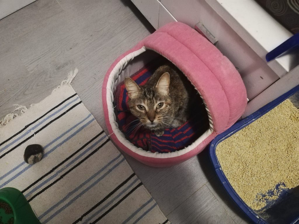 En primer lugar una persona que pudo ver en las pésimas condiciones en las que se encontraban, llevo a Fanfan al veterinario, se pusieron en contacto al momento con la protectora ya que tenía chip. Nos contaron que habían dejado a los gatos en un caserío para cazar ratones, y que les retiraron la comida por completo.