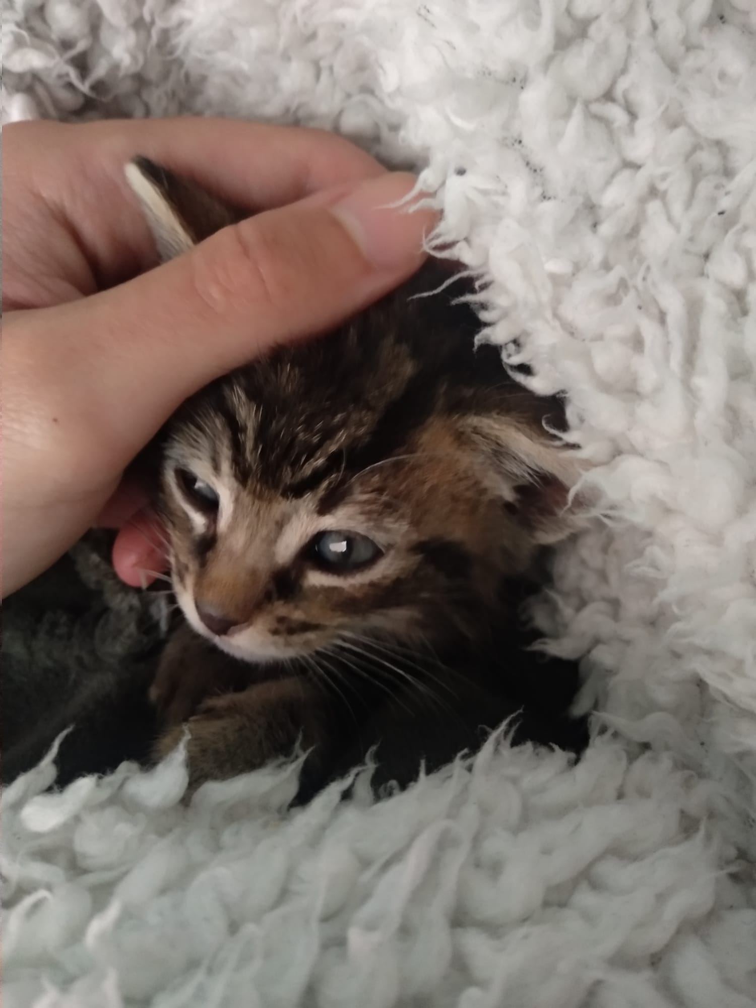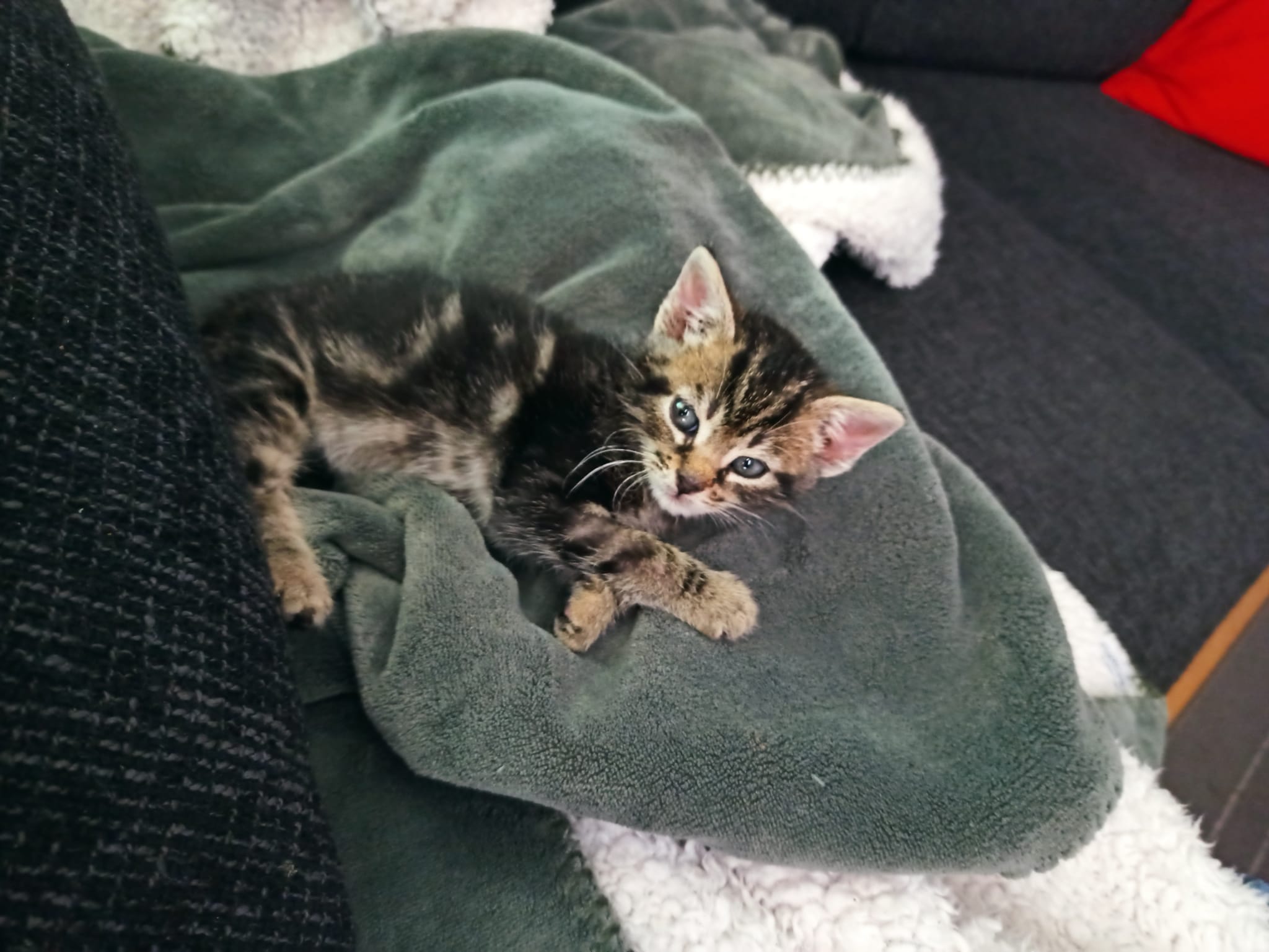 Acaba de terminar su primera desparasitación, nos queda una segunda y la vacuna para que se pueda ir a un hogar definitivo que esperemos no tarde en llegar.
