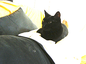 Le gusta estar sobre tus piernas y limpiarte la cara a lengüetazos.