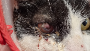 A pesar de los intentos por salvarle el ojito se le ha tenido que enuclear. Ahora mismo se esta recuperando en nuestro refugio.