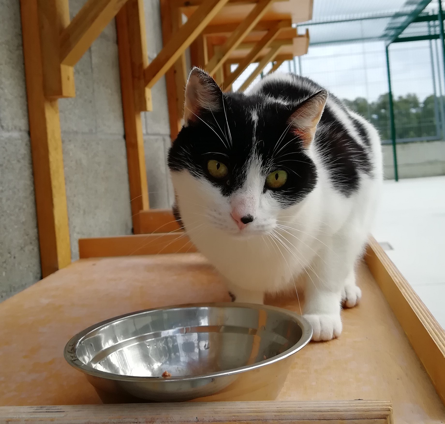 Va a hacer un año que Frijolita esta en la perrera y la vida allí pasa factura. No perdemos la esperanza que alguien se fije en ella. Frijolita es de esos gatos que se acercan a ti cuando entras al recinto con lata, pero no es una gata especialmente cariñosa aunque sabemos que la perrera no es el sitio ideal para que se muestren relajados. Con otros gatos se lleva muy bien, en una de las fotos se la puede ver con Peppo ¿Encontrara Frijolita el hogar que merece?