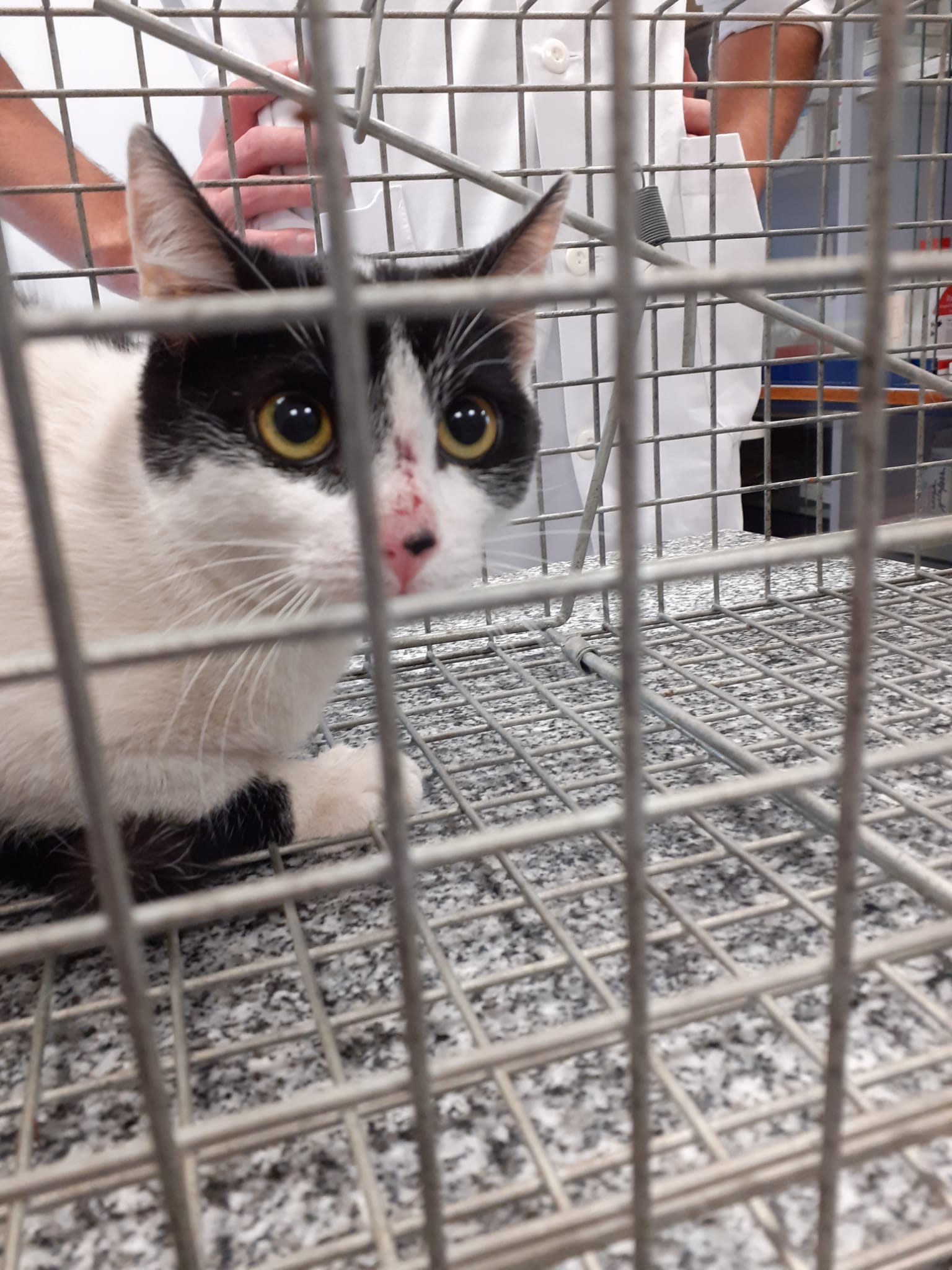 Frijolito se había afincado con otros compañeros felinos (entre ellos Zebra o Findus) en los sótanos de un hospital. Están siendo capturados y llevados a la perrera. Tendrá unos 6 meses, aunque en las fotos parece más grande de lo que en realidad es. Frijolito se muestra se muestra un poco asustado pero ¡¡Sabemos que acabara siendo muy buen gato!!. Sería estupendo encontrar para el una casa de acogida o adopción.