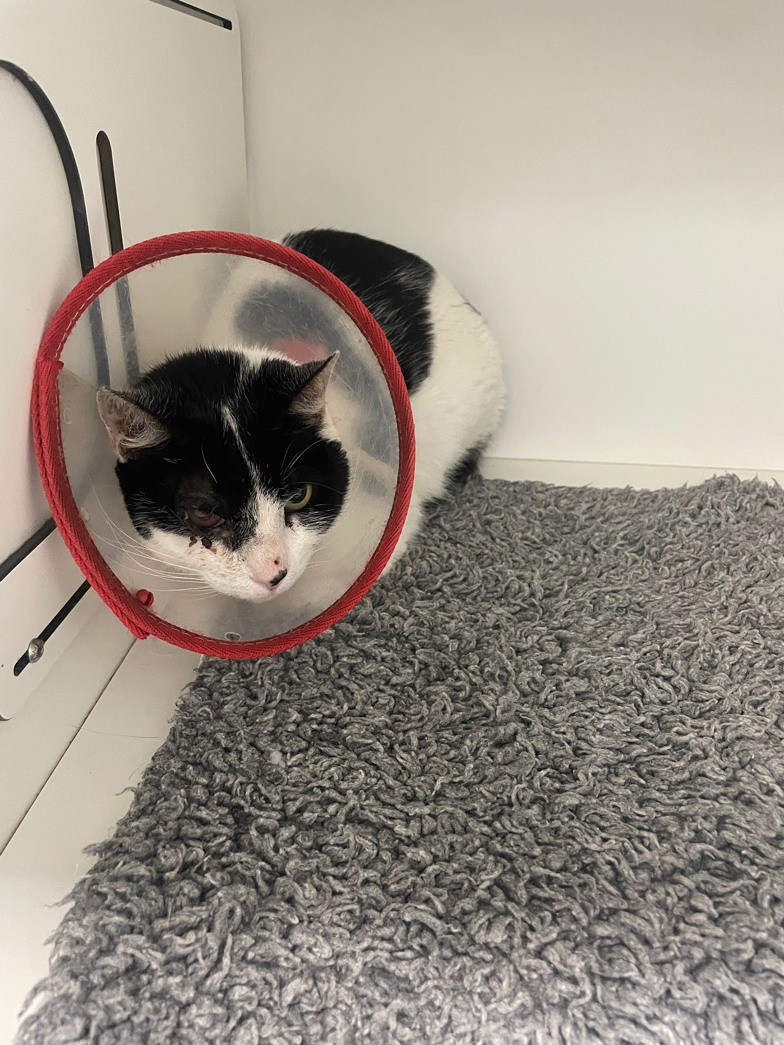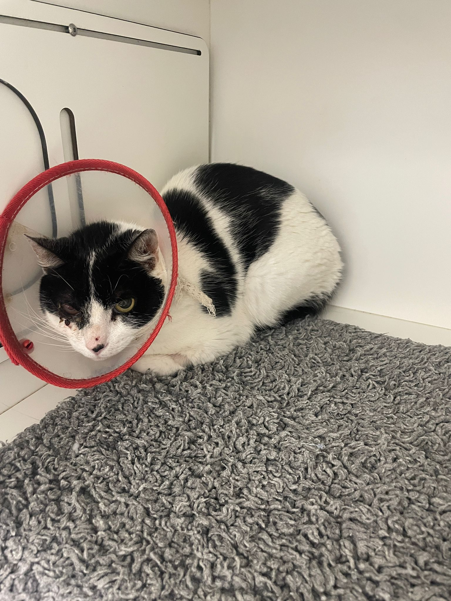 A pesar de los intentos por salvarle el ojito se le ha tenido que enuclear. Ahora mismo se esta recuperando en nuestro refugio.
