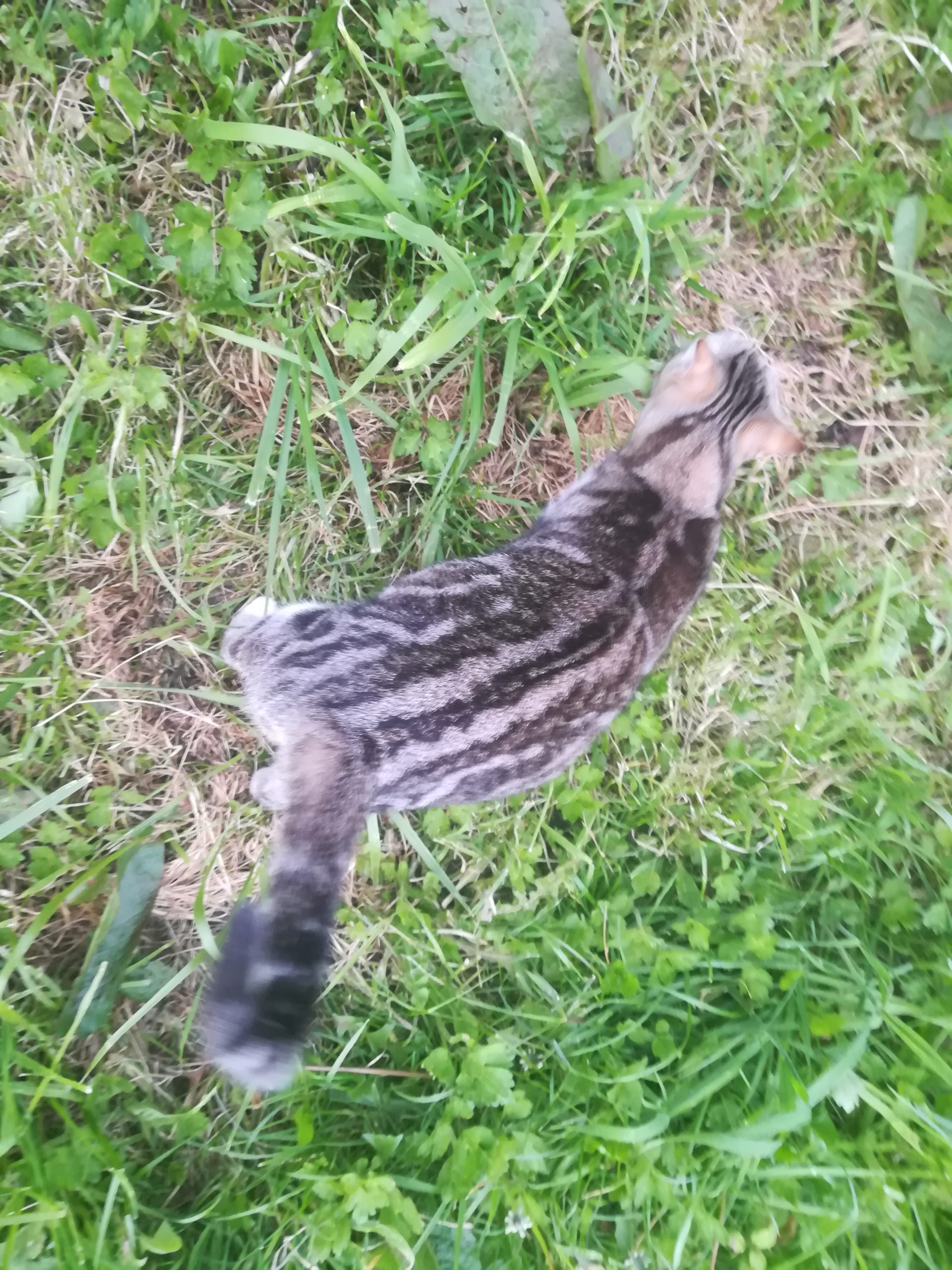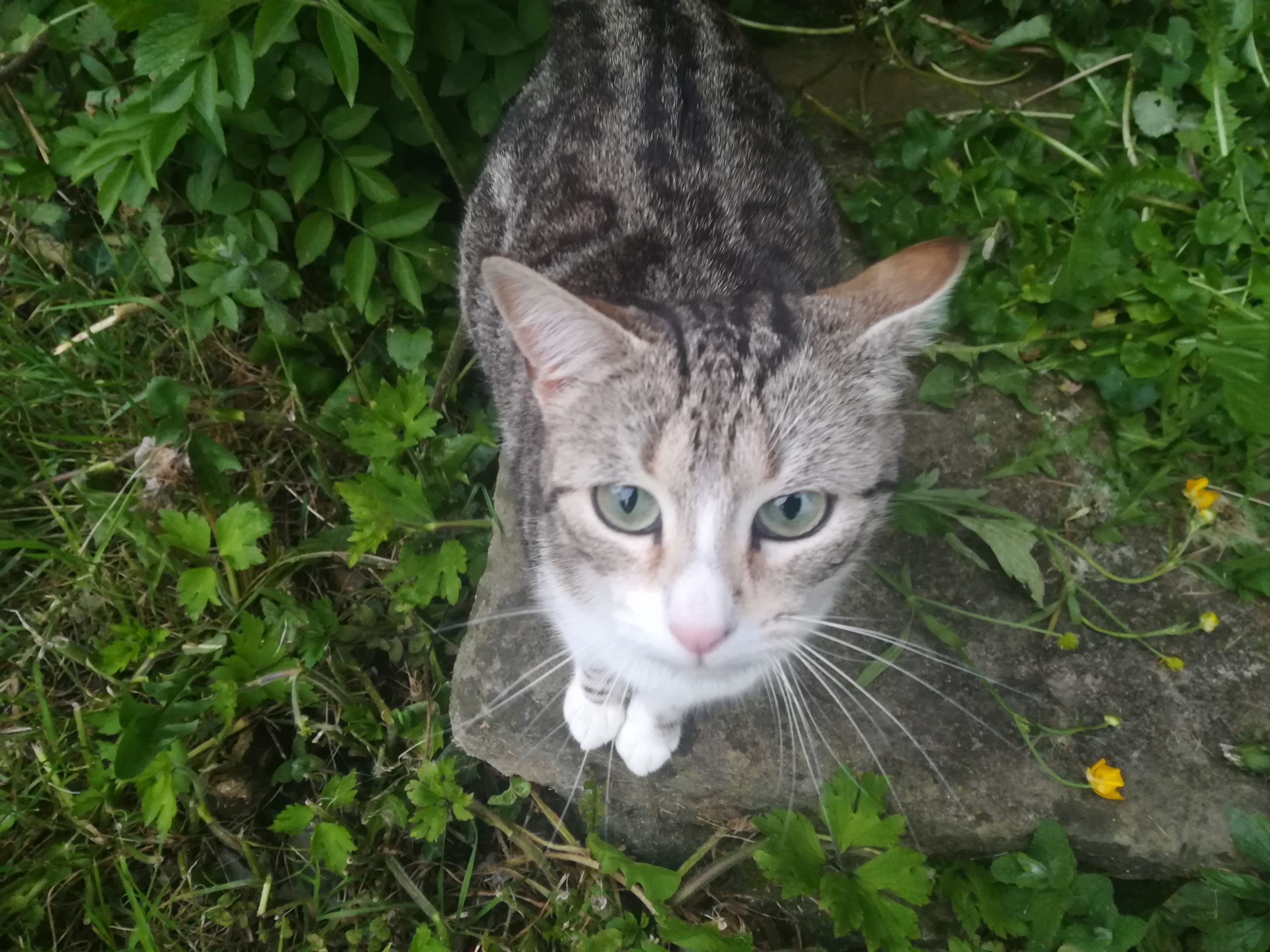 Gara apareció junto a Koi en la misma zona, sospechamos que son hermanos, ya que parecen tener la misma edad. Cuándo pudimos hacer un hueco para ella, se había refugiado en la huerta de un particular para tener a sus crías.