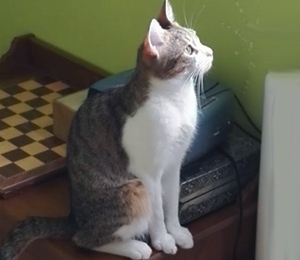 Tras 9 meses adoptado Gary vuelve a nosotros. La que ha sido su familia hasta ahora nos cuenta lo siguiente: «Gary es un gato muy huidizo y extremadamente miedoso. Después de casi nueve meses en casa cada vez que entramos en casa sale corriendo. Apenas se deja tocar, por mi un poco pero por mi hijo nada. Solo se muestra (aparentemente) mas cercano cuando hay comida de por medio y cree que se la vamos a dar. Si no llevas comida en la mano y te acercas, sale corriendo.»