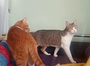 La casa de acogida nos cuenta: » La situación aquí no es nada buena… estoy trabajando casi 12 horas al dia y no puedo encerrar en una habitación a mi gato durante 12 horas, mas las de la noche. Desde hace ya bastante gordilui no quiere ni pisar la arena, aunque sea limpia, porque le huele a Gary. Mea y hace cacas fuera, está muy nervioso y la verdad es que yo no estoy llevando nada bien esto de que mi gato no haga las necesidades dentro cuando nunca lo había hecho. Gordilui no quiere estar con Gary y este le sigue a todas partes. La verdad es que cuando acogí a Gary no pensé que podía pasar esto, y solo quería que un gato que habia estado viviendo en un hogar, no fuera derechito a la perrera. No quiero eso para Gary, pero no puedo estar así mucho tiempo más. Espero que lo entendáis y me podáis dar buenas noticias pronto.»