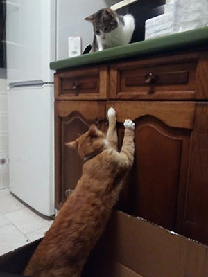 Se ve que es un gato cariñoso al que le apetece tener contacto con más gatos. Hace un par de días le dejamos ya andar por toda la casa y aunque podría haber aprovechado para esconderse en cualquier rincón, eso no fue lo que hizo. Quería estar cerca nuestro y jugar con Gordilui (mi gato). Durante todo el día lo único que quiere es jugar, juegan a peleas, juegan a corretear por toda la casa… Mi gato le hizo un tour por mi casa y suelen subir a mi habitación (que es donde duerme Gordilui). Cuando no están juntos, Gary le llama para jugar.