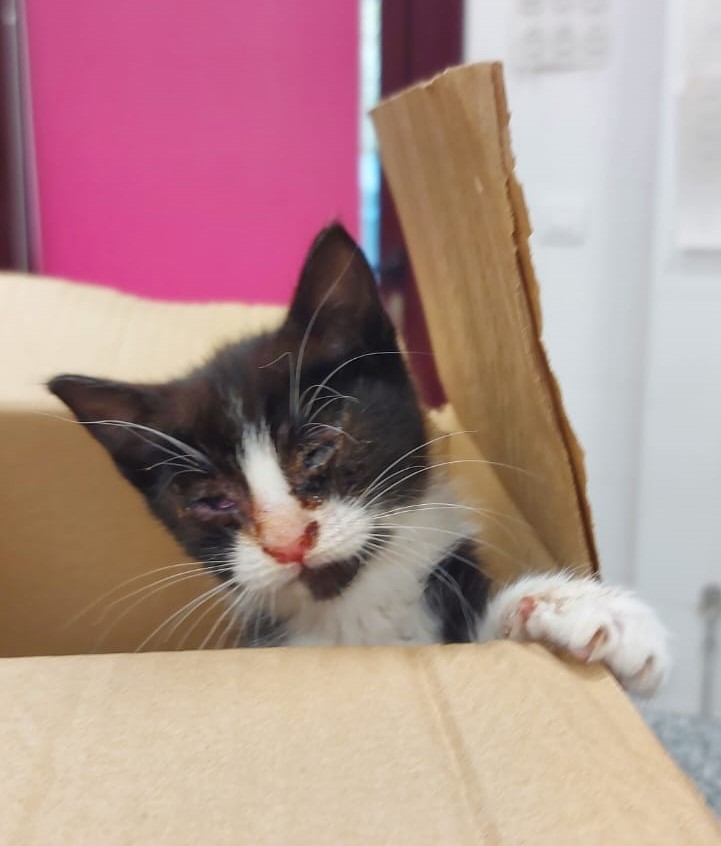 GEORGIA ha sido encontrada junto a Ginny por una taxista que no ha dudado en meterlos en su coche. Han llegado ambas famélicas, unos 460 gramos cuando deberían pesar mucho más. Están ingresadas con cuadro respiratorio a la espera de examen completo por el vet. Ambas necesitan padrinos pero si no puedes hacerlo puedes echarles una patita a través de los siguientes medios: KutxabankES63 2095 0360 10 9111588575 o Caja Rural de NavarraES76 3008 0241 88 2397692928 o a través de PayPal .