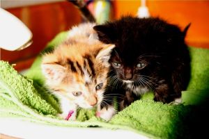 Mimo y Ginebra son dos hermanitos, tamaño palma de la mano, que fueron encontrados, solos en unas campas, ni rastro de la madre, llevaban varios días maullando desconsolados, pero cuando fueron a cogerles, solo encontraron a Ginebra.