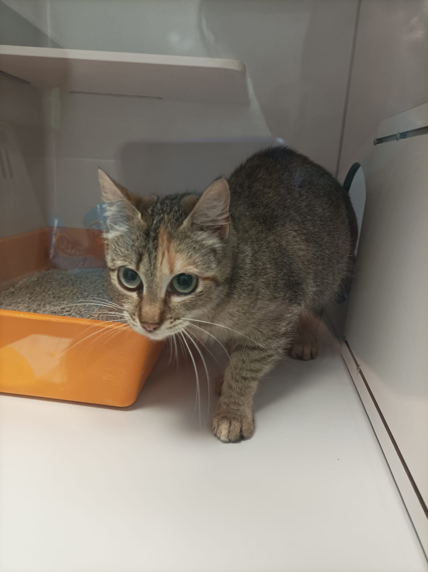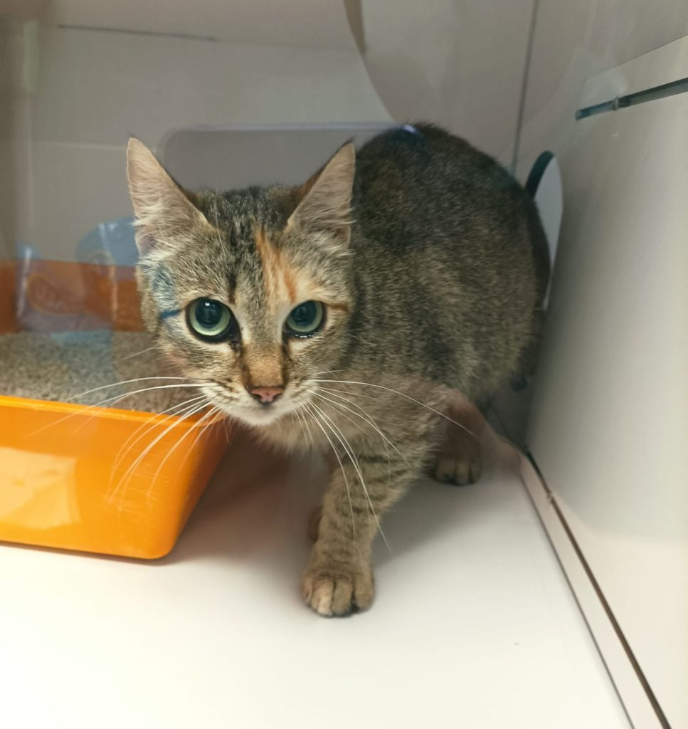 GISELA procede de una colonia y tras muchos intentos hemos conseguido atraparla. Es la mami de SAM Y CAT. Ya ha sido esterilizada pero de momento está en cuarentena hasta que le hagamos los test habituales. De momento tiene mucho susto y se esconde de nosotros. Iremos viendo como evoluciona cuando se acostumbre a su nueva vida.