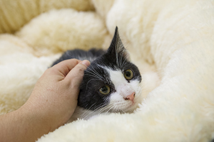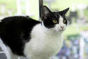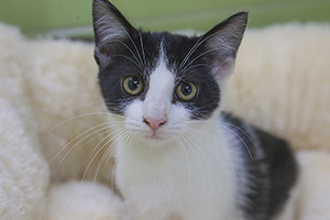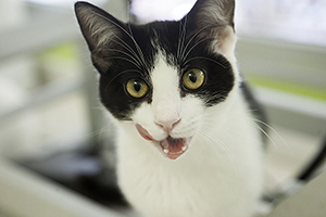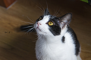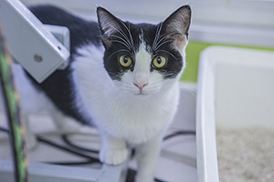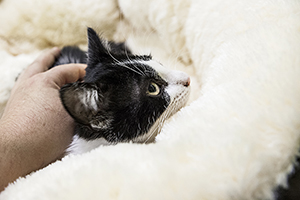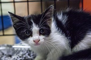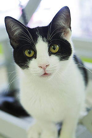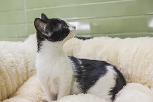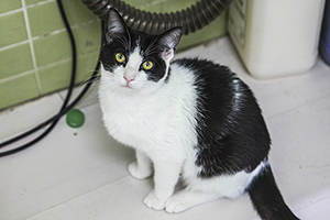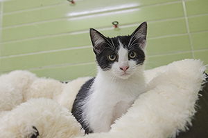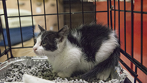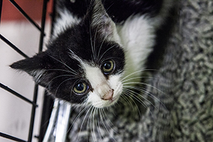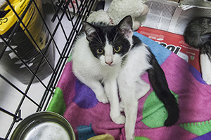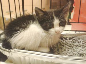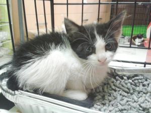 Gladys sigue con nosotros, es una cachorrita redonda. Comparte jaula con Boni y también de entrada es algo tímida, pero no se esconde, solo le hace falta un poco de tiempo y mano y será una ronroneadora nata.