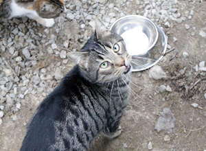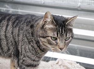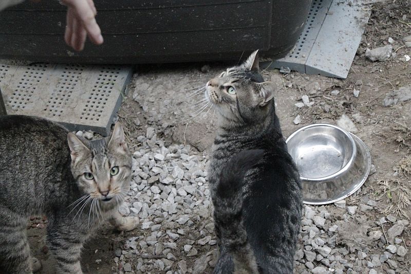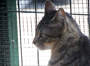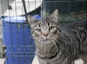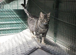 Goyo está pasando su primer invierno en la perrera. Y allí te espera en la puerta, como se puede ver en las fotos, y te llama. Una vez dentro se te cruza entre los pies…¡no es facil hacer fotos! Es un gato majisimo.