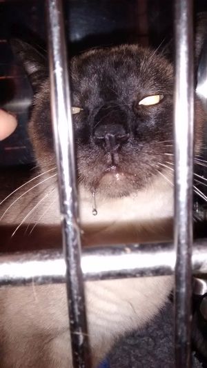 Lo malo…es que le hemos tenido que ingresar de urgencia por que nos lo encontramos tiradito y con vómitos y el arenero inundado